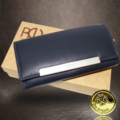 Luxusní dámská peněženka z pravé kůže v modrém provedení. Personalizace vlastním motivem jí dodá výjimečnost a osobní kouzlo.
