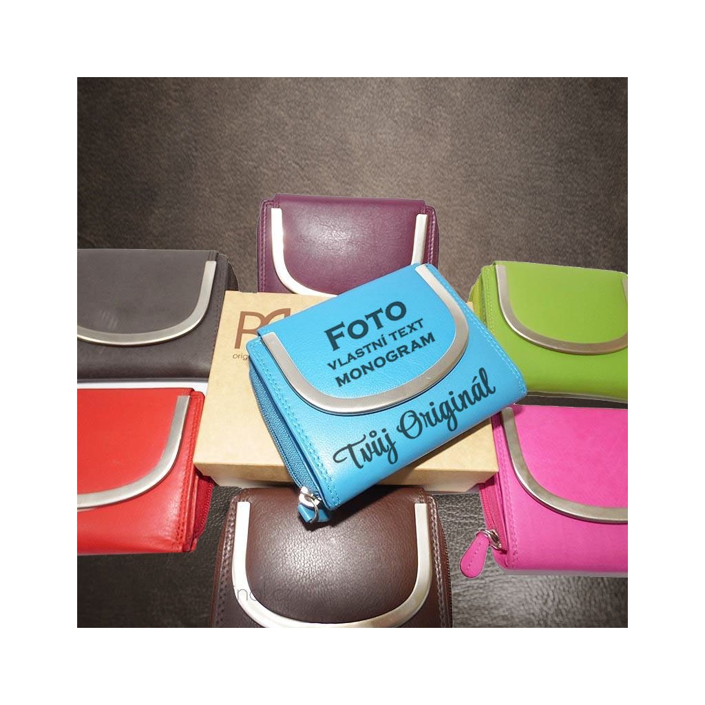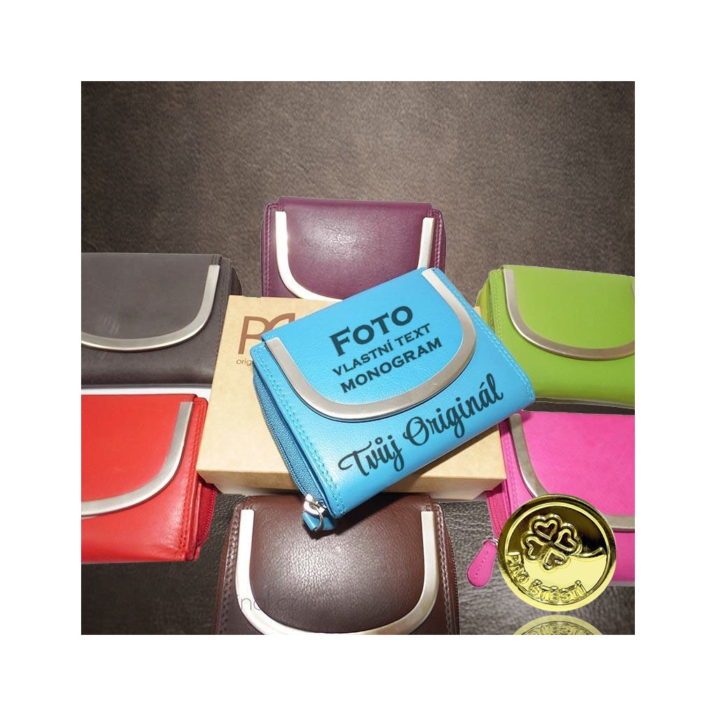 Dámská kožená peněženka TILLBERG s monogramem a vlastním textem (více barev) + Akce - zlatá mince Pro štěstí ZDARMA