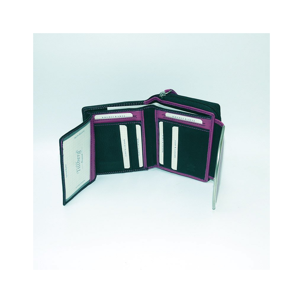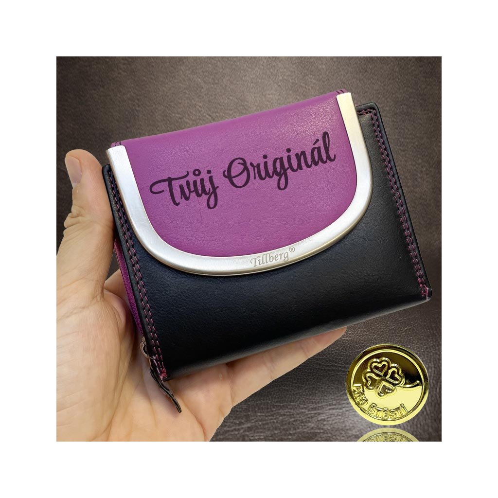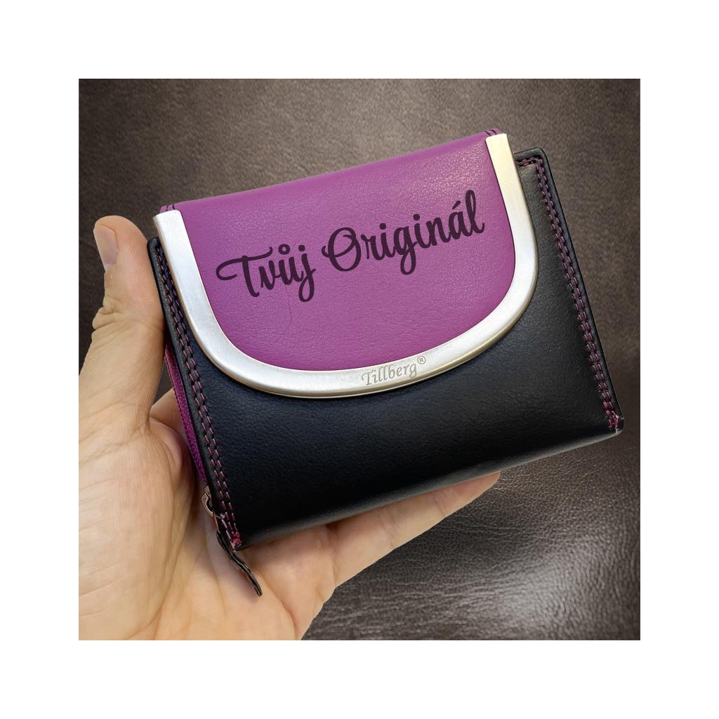Dámská černo růžová kožená peněženka TILLBERG s možností vlastního textu, monogramu nebo fotografie