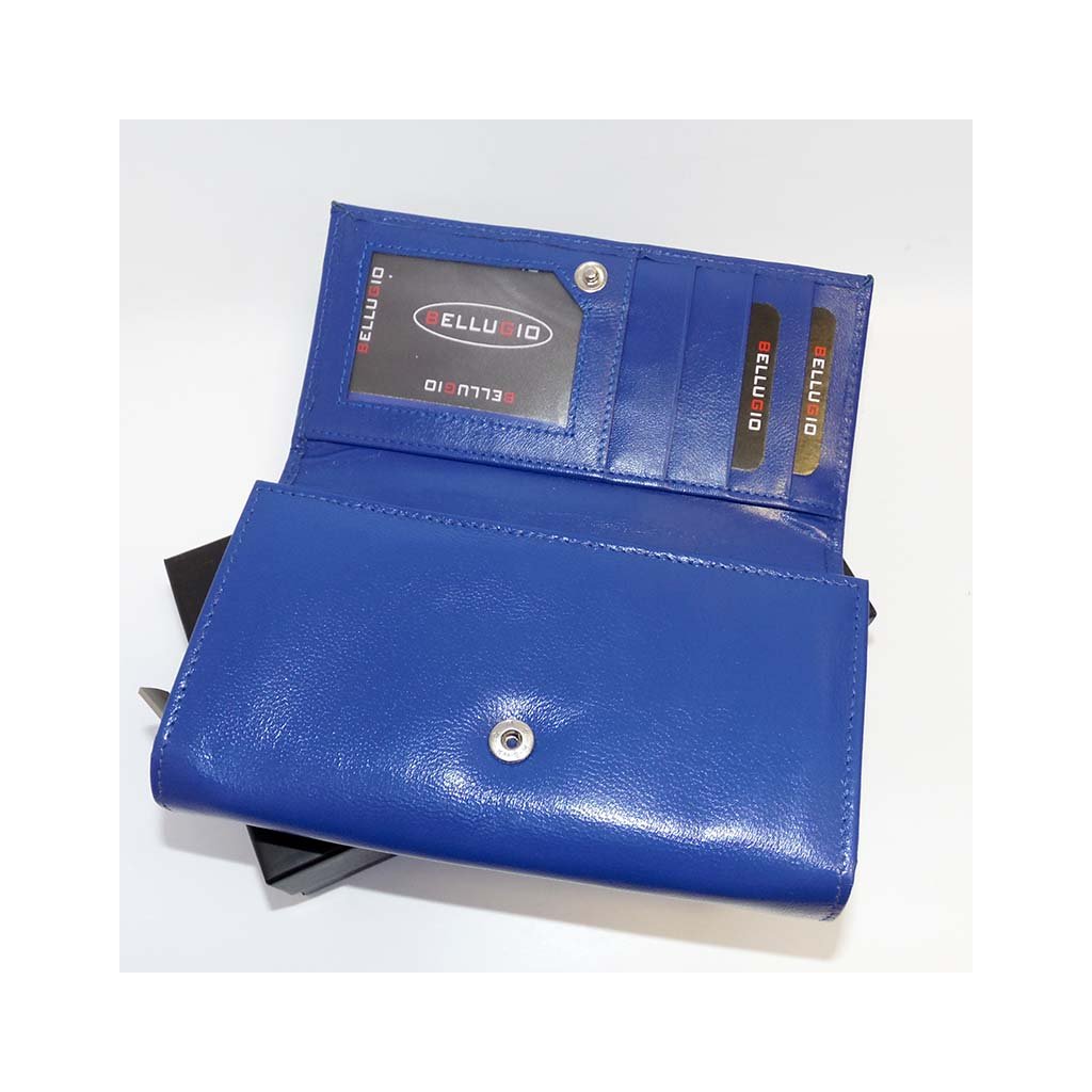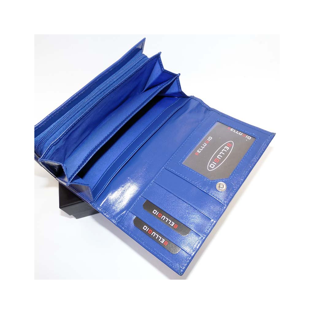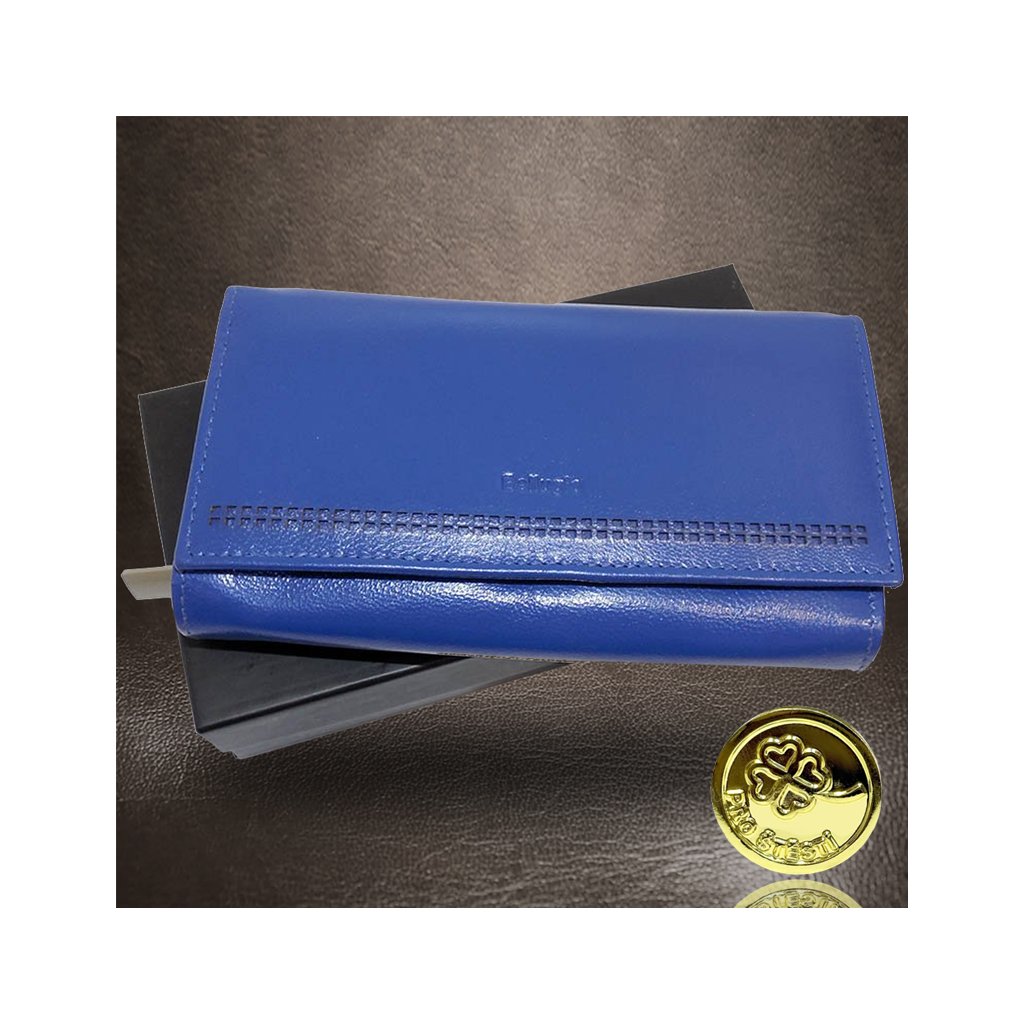 Dámská modrá kožená peněženka BELLUGIO Leather s monogramem a vlastním textem + Akce - zlatá mince Pro štěstí ZDARMA