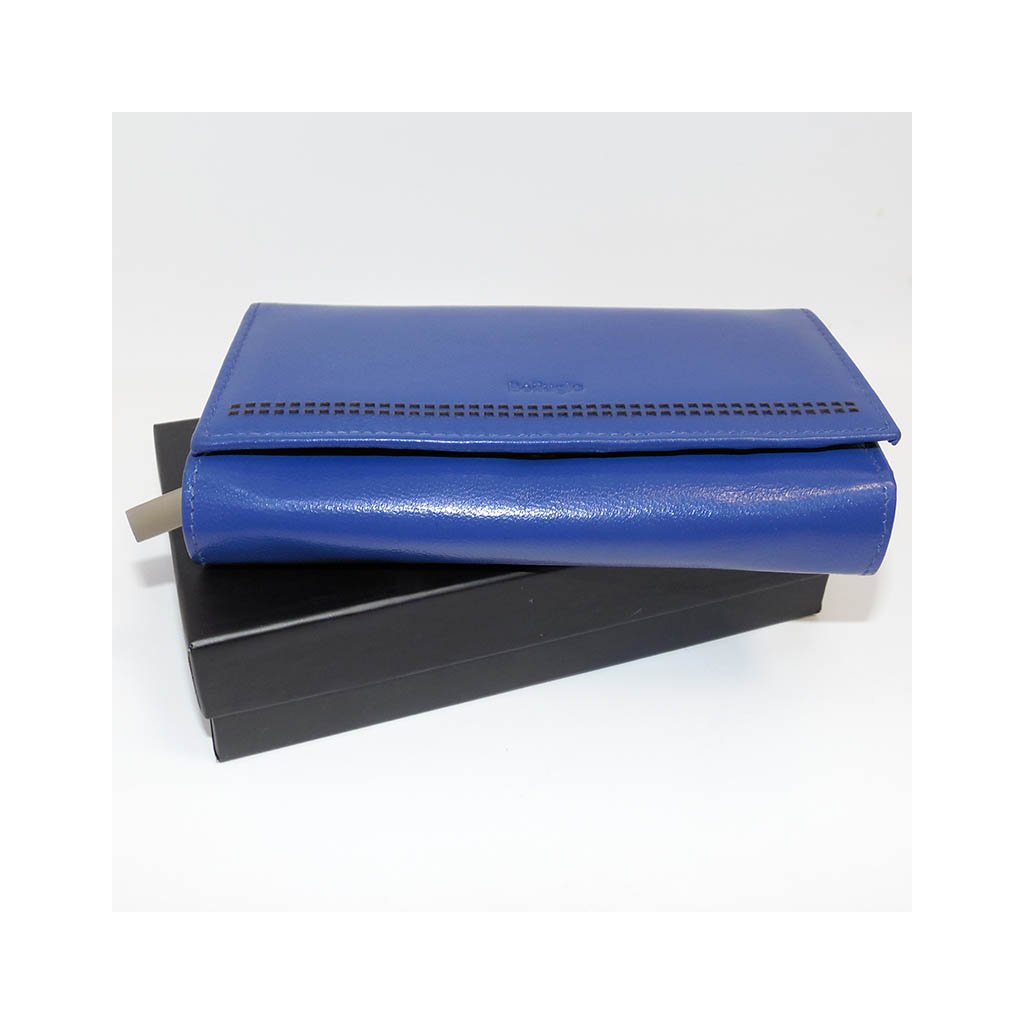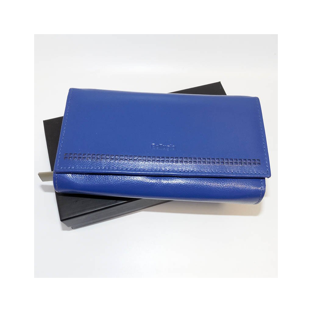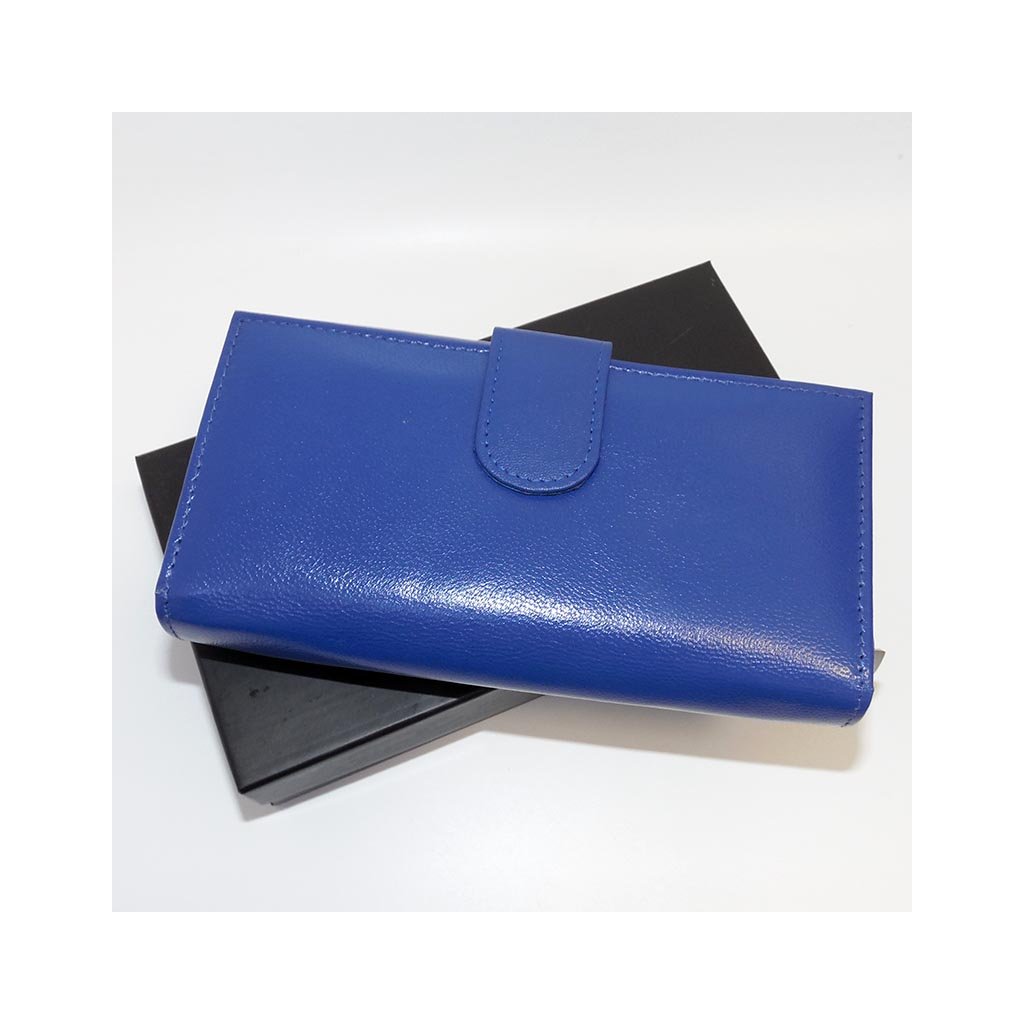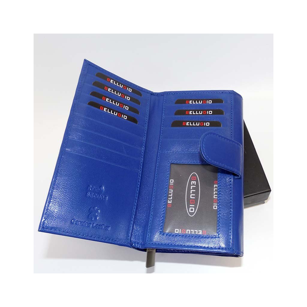 Dámská modrá kožená peněženka BELLUGIO Leather s monogramem a vlastním textem + Akce - zlatá mince Pro štěstí ZDARMA