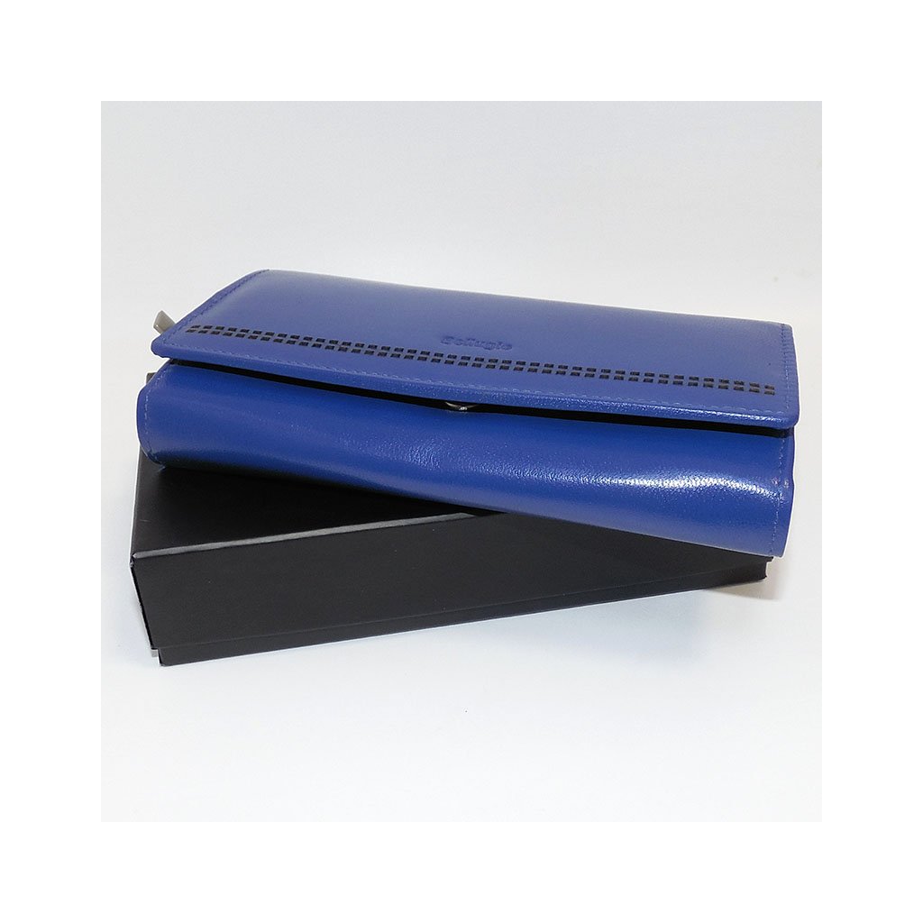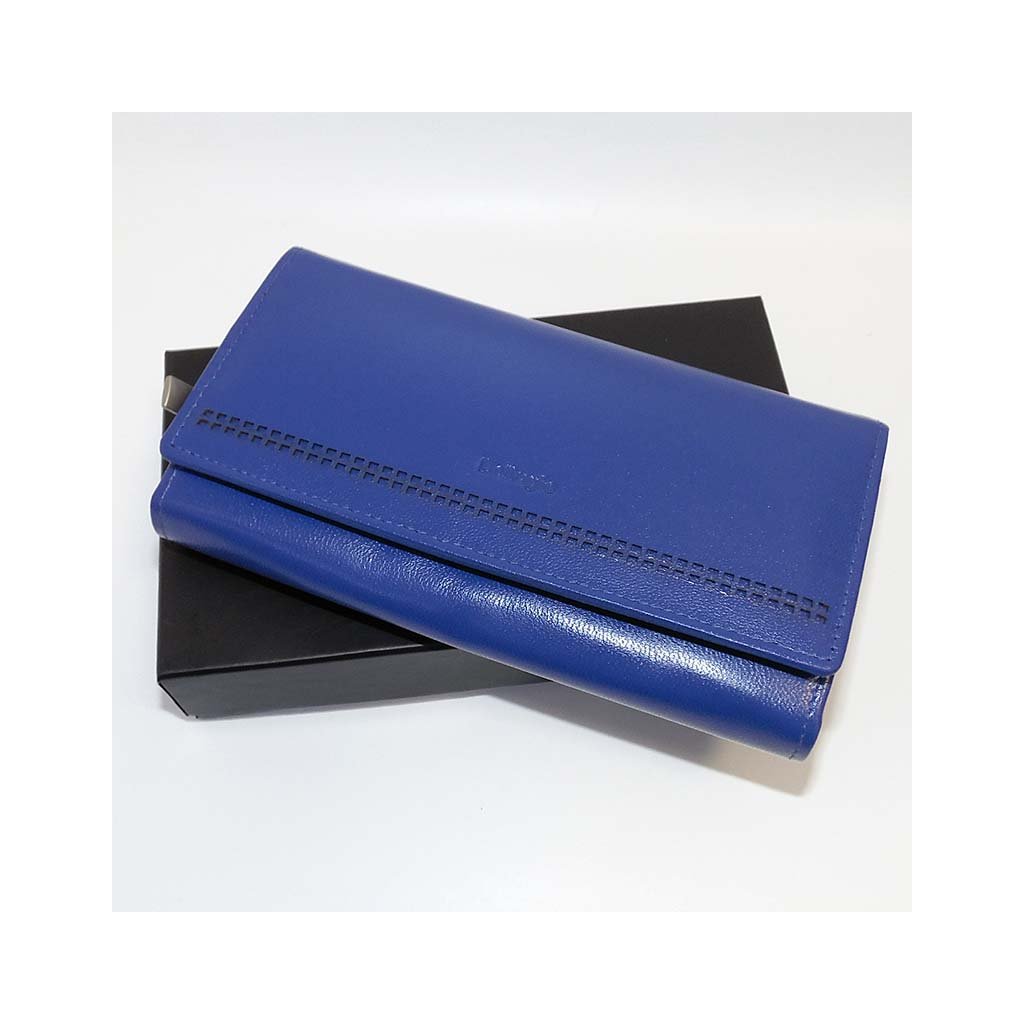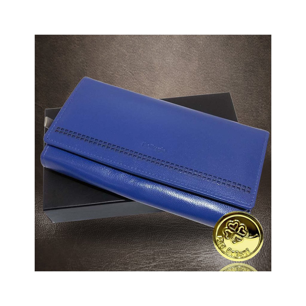 Dámská modrá kožená peněženka BELLUGIO Leather s monogramem a vlastním textem + Akce - zlatá mince Pro štěstí ZDARMA
