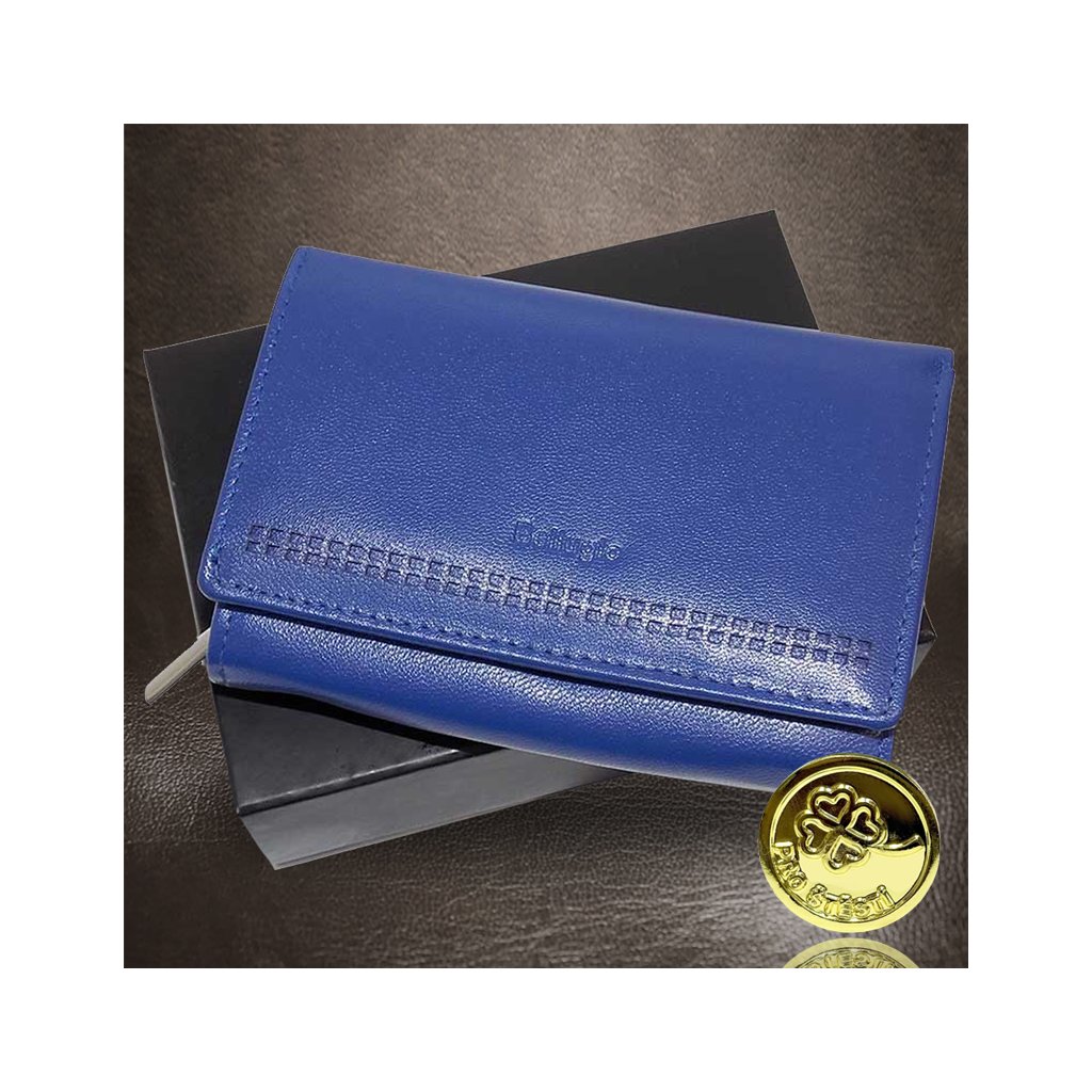Dámská modrá kožená peněženka BELLUGIO s monogramem a vlastním textem + Akce - zlatá mince Pro štěstí ZDARMA