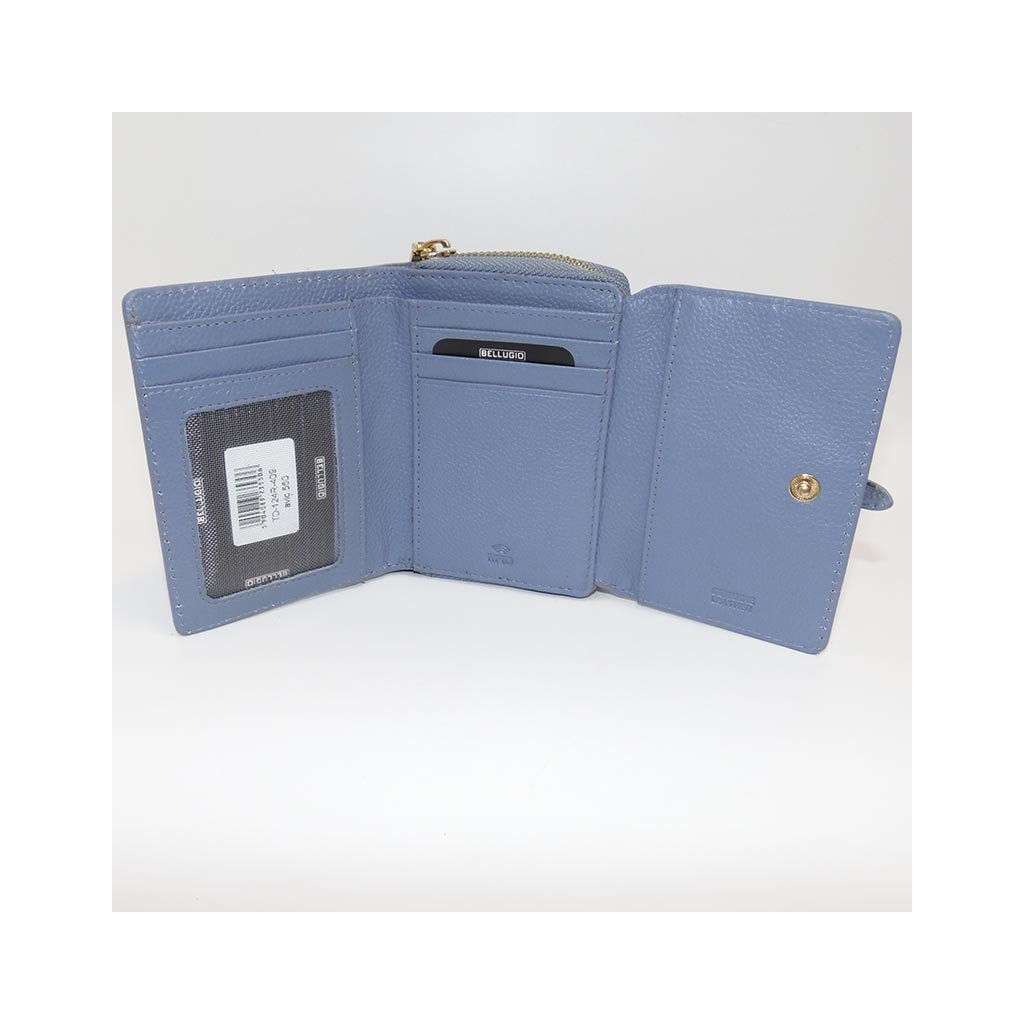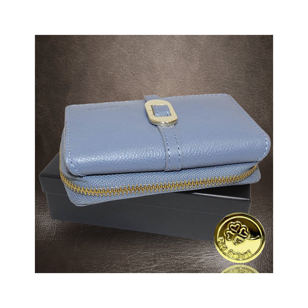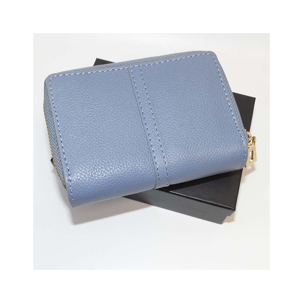 Dámská modrá kožená peněženka na zip BELLUGIO Leather s monogramem a vlastním textem + Akce - zlatá mince Pro štěstí ZDARMA