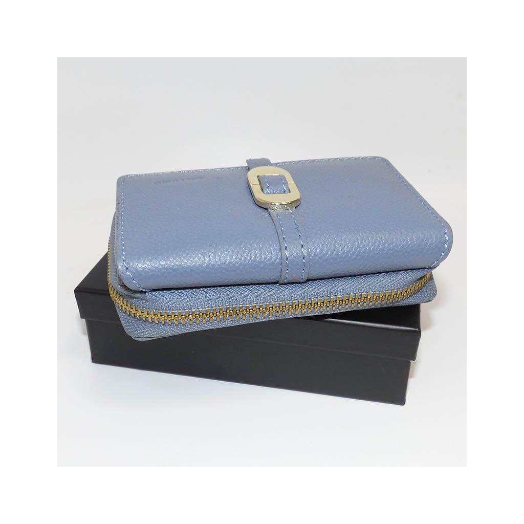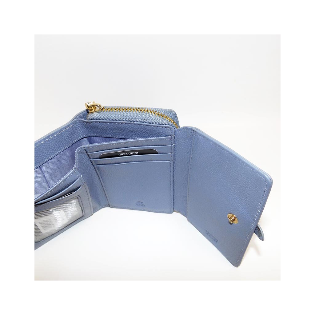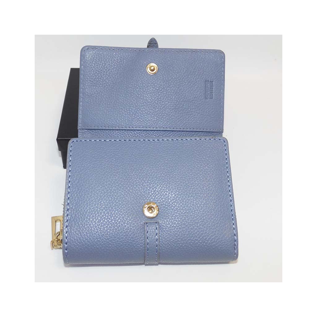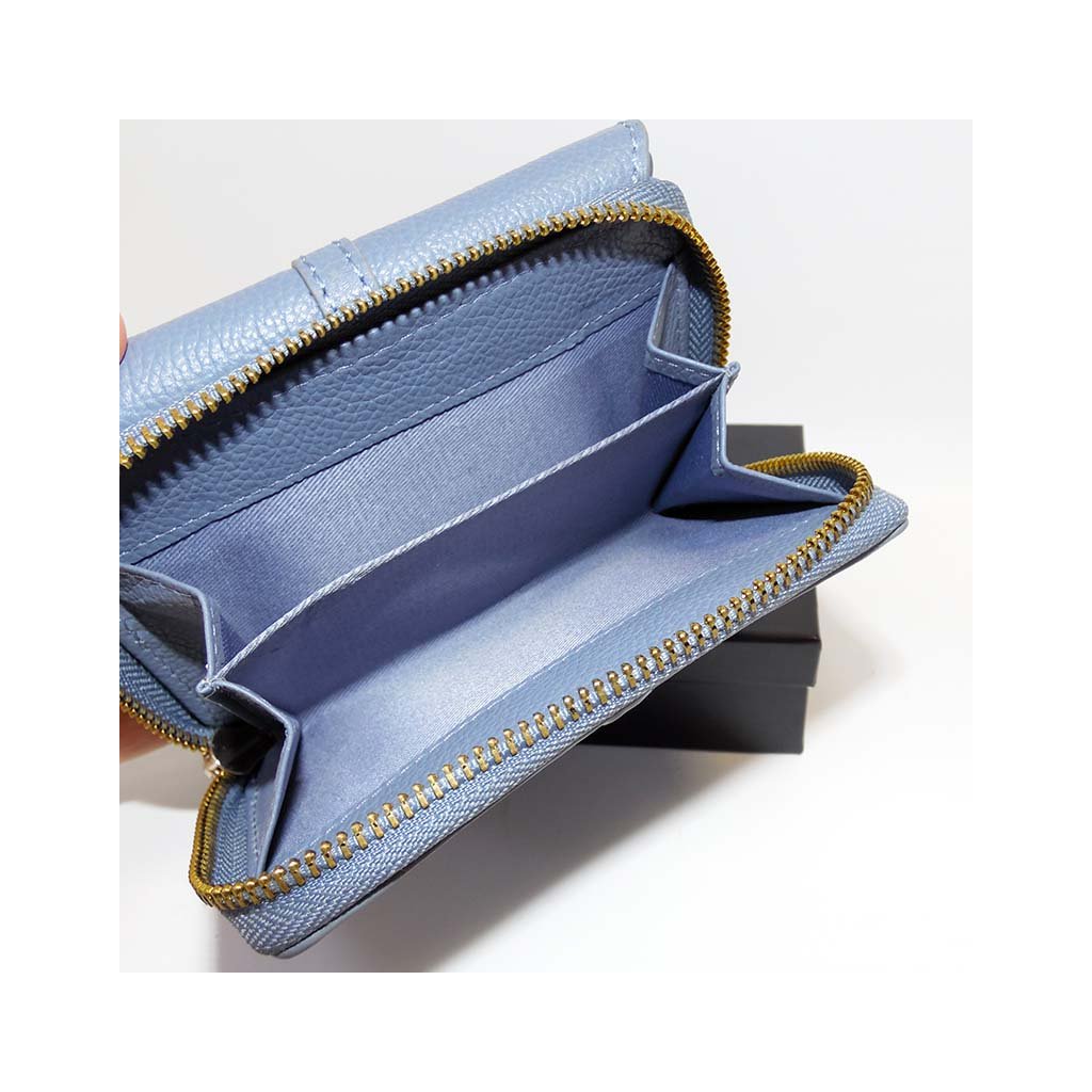 Dámská modrá kožená peněženka na zip BELLUGIO Leather s monogramem a vlastním textem + Akce - zlatá mince Pro štěstí ZDARMA