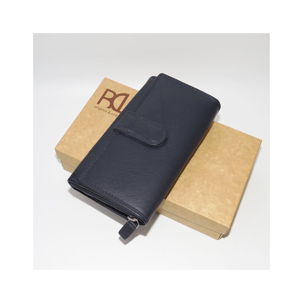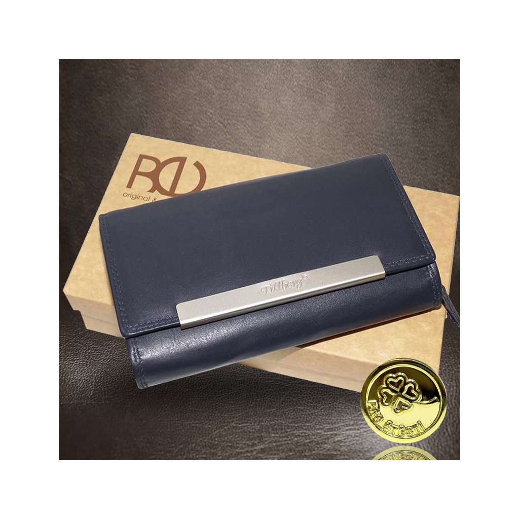 Dámská modrá kožená peněženka TILLBERG s monogramem a vlastním textem + Akce - zlatá mince Pro štěstí ZDARMA