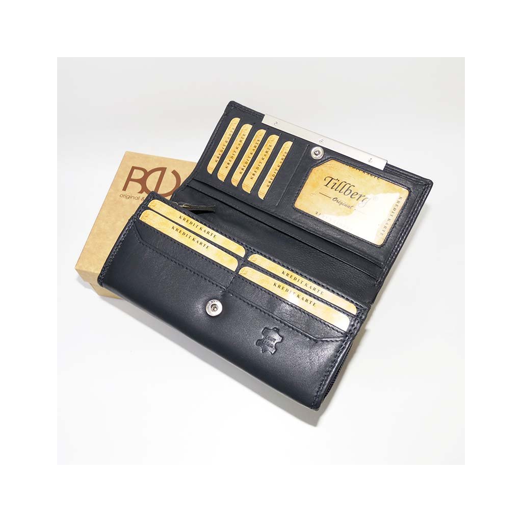 Tato tmavě modrá dámská kožená peněženka TILLBERG je jako stvořená pro ty, kteří ocení spojení luxusního vzhledu s praktičností. Pečlivě zpracovaná z pravé hovězí kůže, prošitá tmavou nití a promyšleně rozvržená. Díky možnosti přidat monogram, text nebo fotografii se z ní stává naprosto jedinečný originál – ať už jako dárek nebo osobní kousek.
