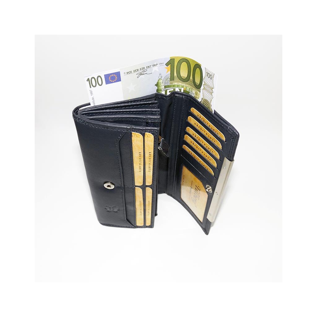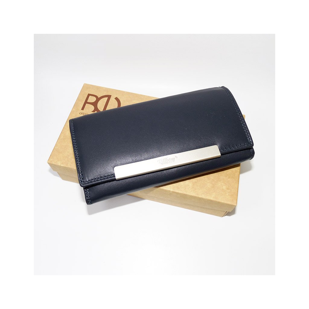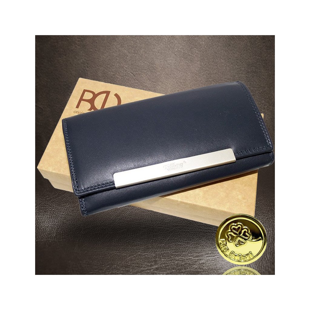 Dámská modrá kožená peněženka TILLBERG s monogramem a vlastním textem + Akce - zlatá mince Pro štěstí ZDARMA