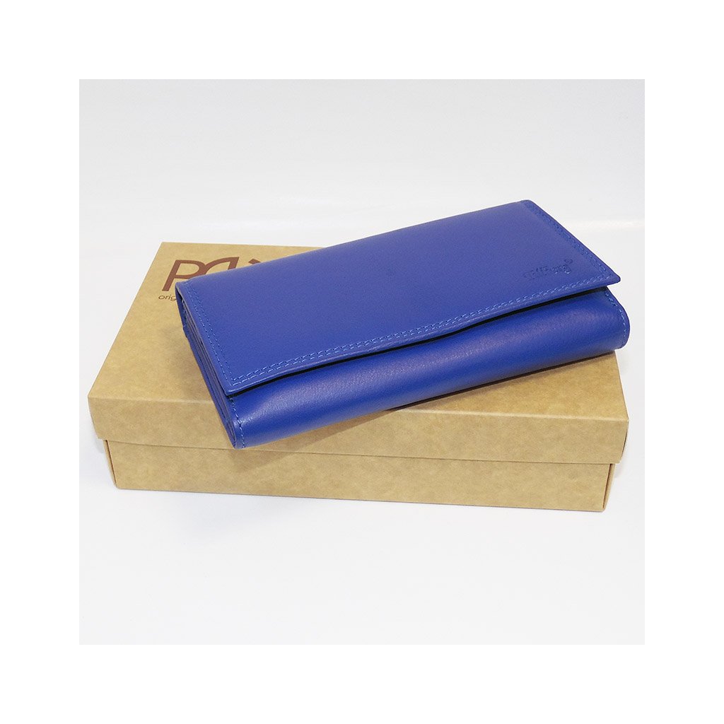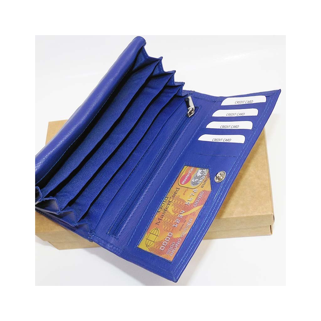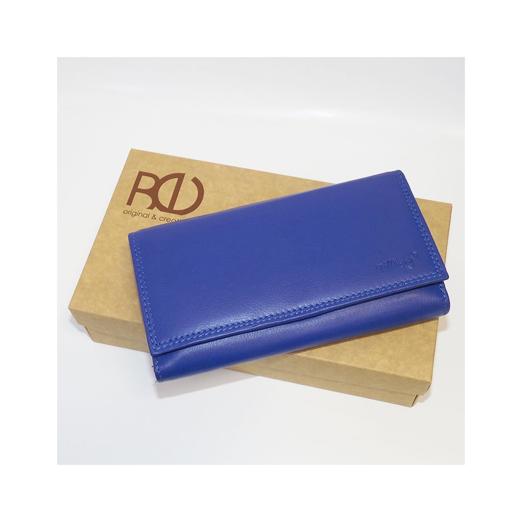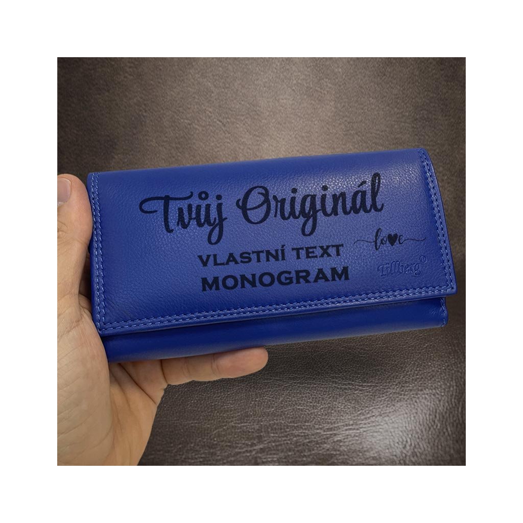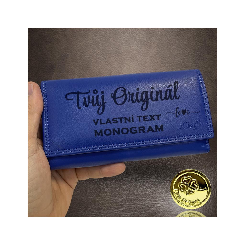 Dámská modrá kožená peněženka TILLBERG s monogramem a vlastním textem + Akce - zlatá mince Pro štěstí ZDARMA