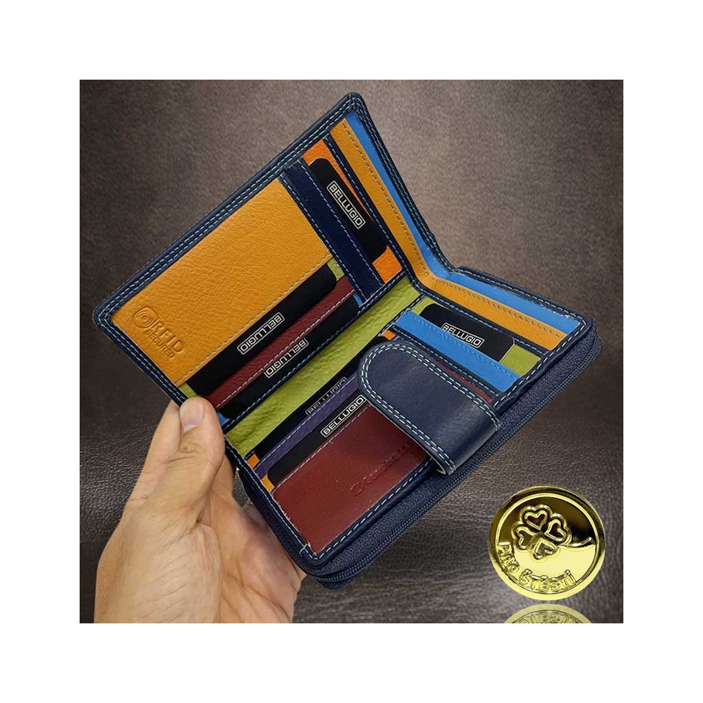 Dámská modrá MULTICOLOR kožená peněženka BELLUGIO s monogramem + Akce - zlatá mince Pro štěstí ZDARMA