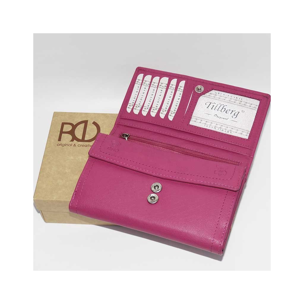 Vsaďte na originalitu, praktičnost a špičkové zpracování – růžová dámská peněženka TILLBERG LUXURY spojuje poctivou kůži, precizní prošití a nadčasový design. Designový kovový detail na přední straně dodává na exkluzivitě. Navíc si ji můžete nechat doplnit o vlastní text, monogram nebo fotografii, a vytvořit tak osobní kousek, který bude patřit jen vám.