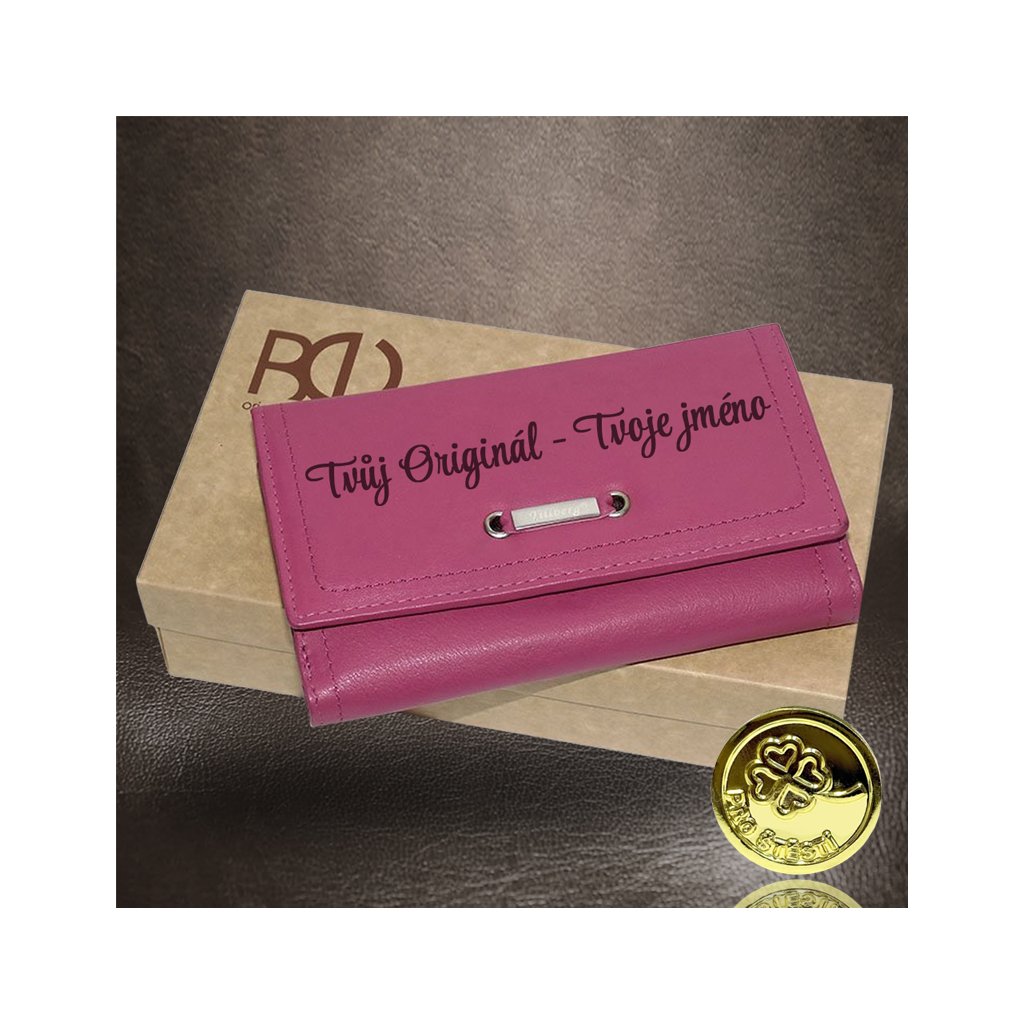 Dámská růžová kožená peněženka TILLBERG LUXURY s monogramem a vlastním textem + Akce - zlatá mince Pro štěstí ZDARMA