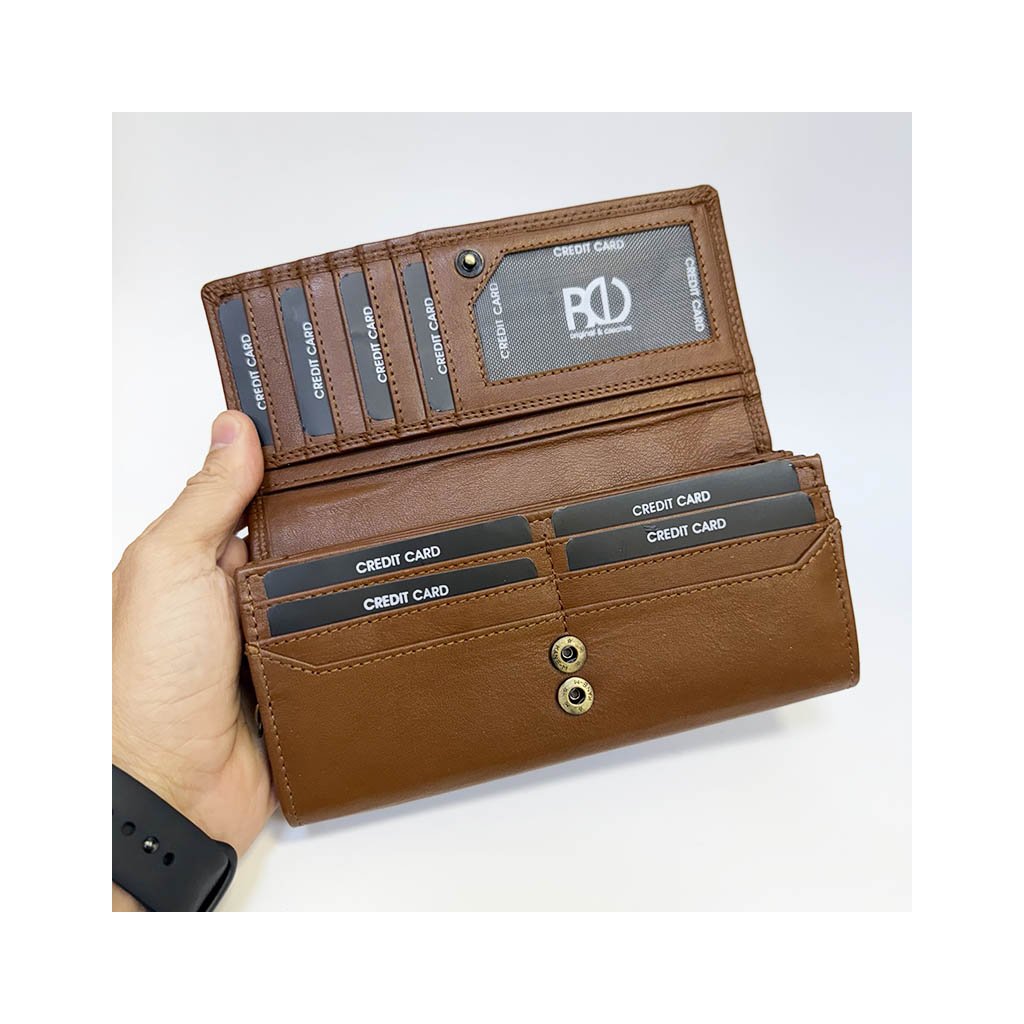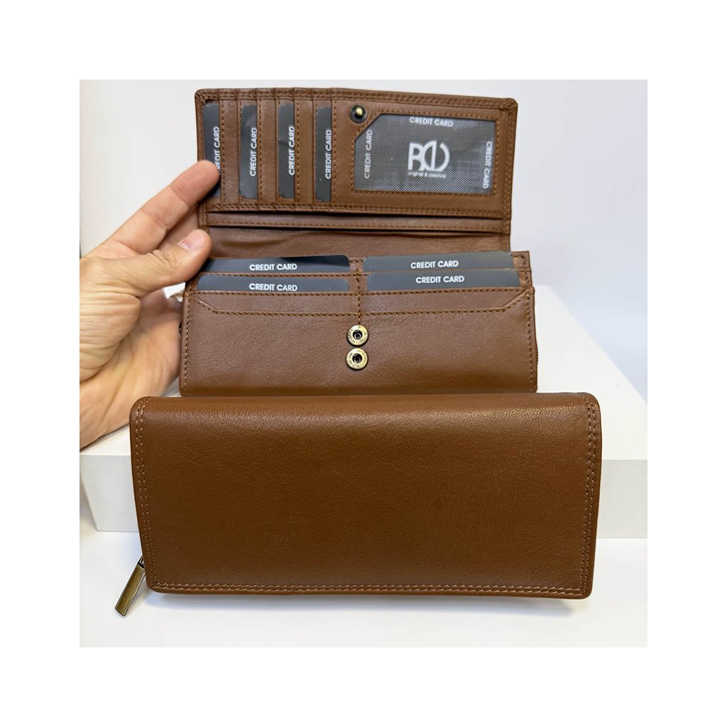 Elegantní dámská peněženka z hnědé kůže s RFID ochranou. Možnost doplnění monogramu, textu nebo fotografie.