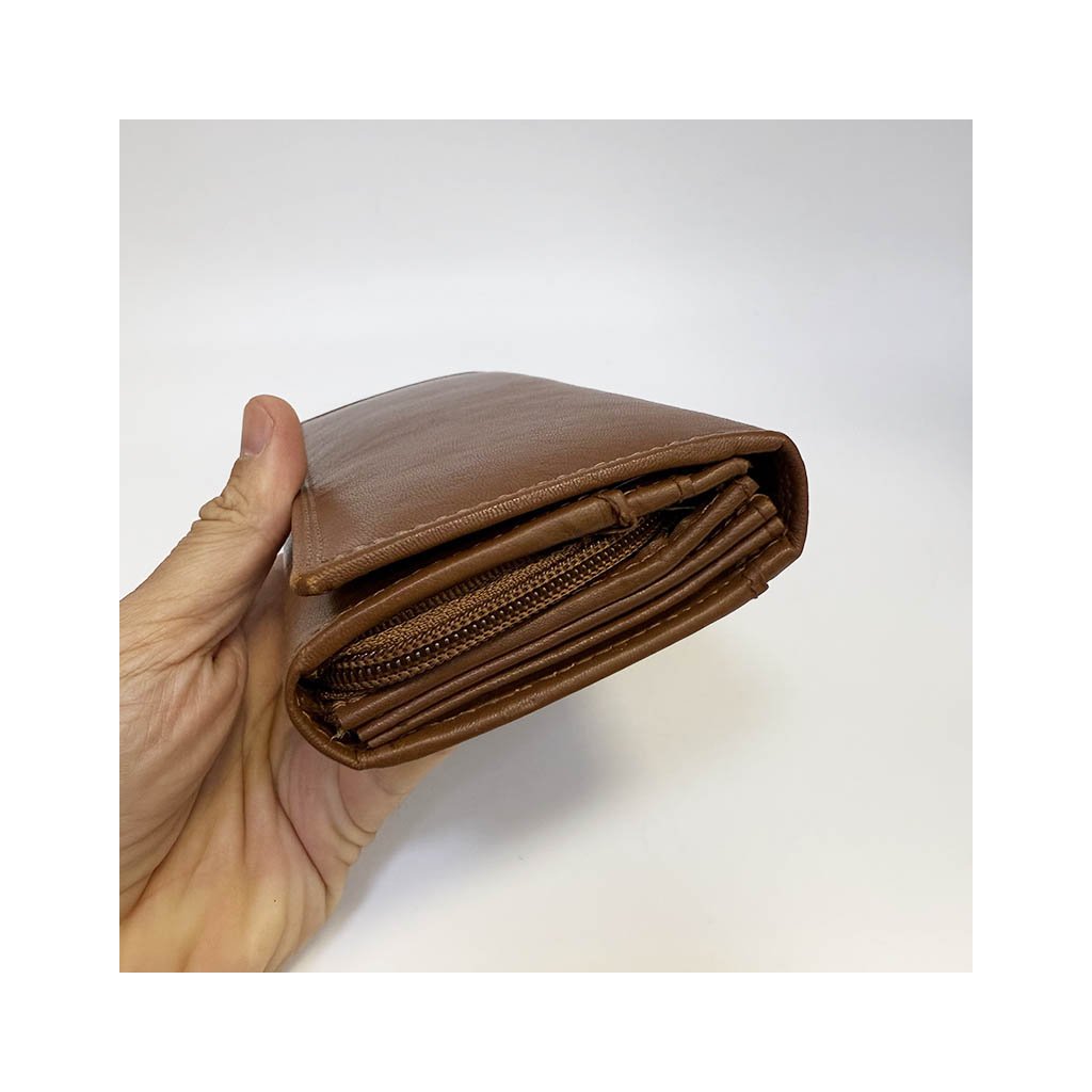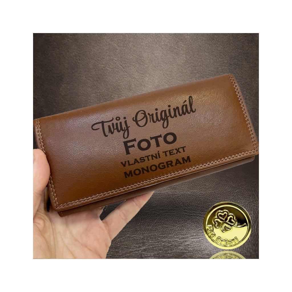 Dámská světle hnědá kožená peněženka BEORIGINAL Leather s monogramem, textem nebo fotkou + Akce - zlatá mince Pro štěstí ZDARMA