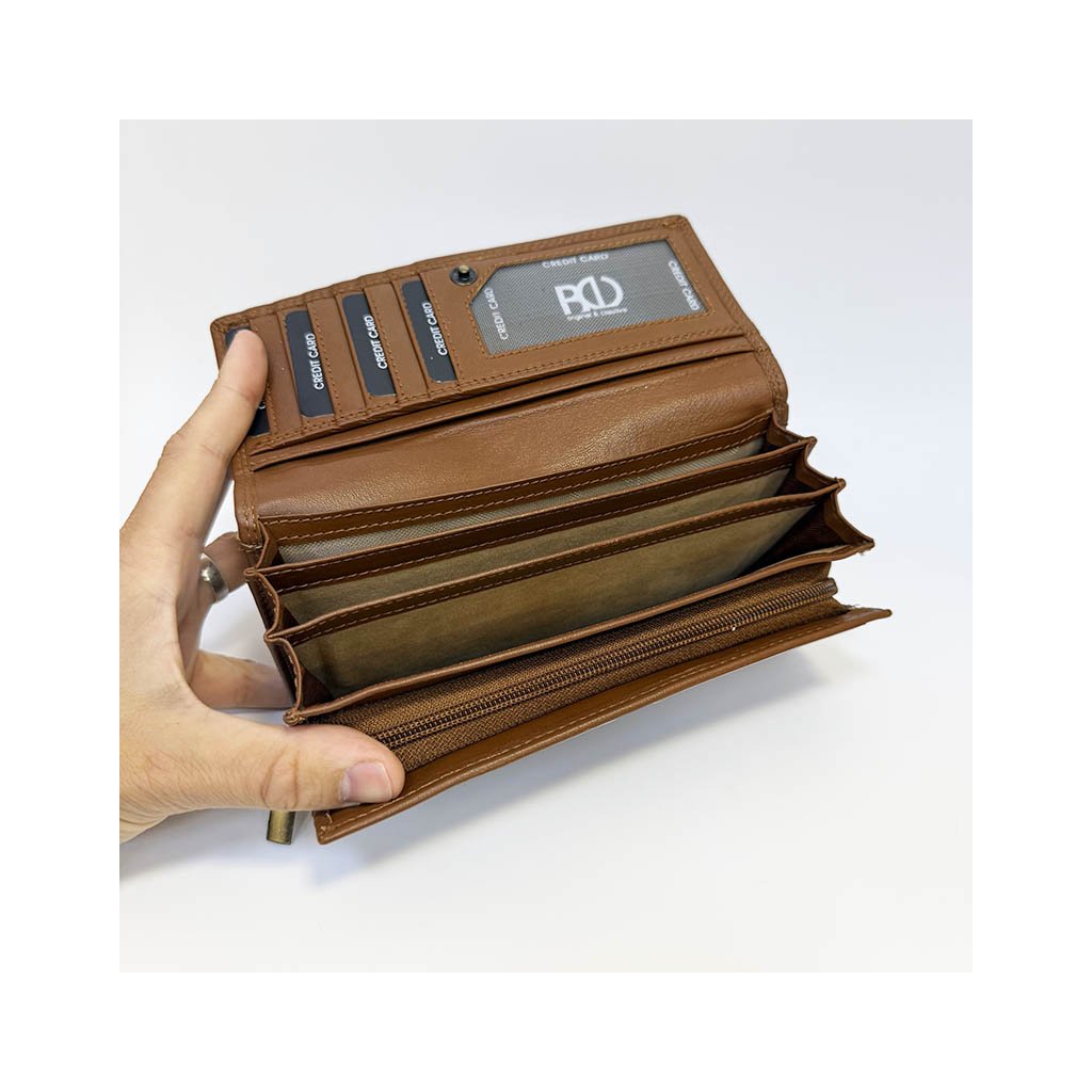 Hledáte originální a praktický dárek pro ženu? Tato dámská peněženka z kvalitní pravé hovězí kůže v elegantním světle hnědém odstínu spojuje nadčasový vzhled, funkčnost a možnost vytvořit osobní motiv pomocí gravírování.