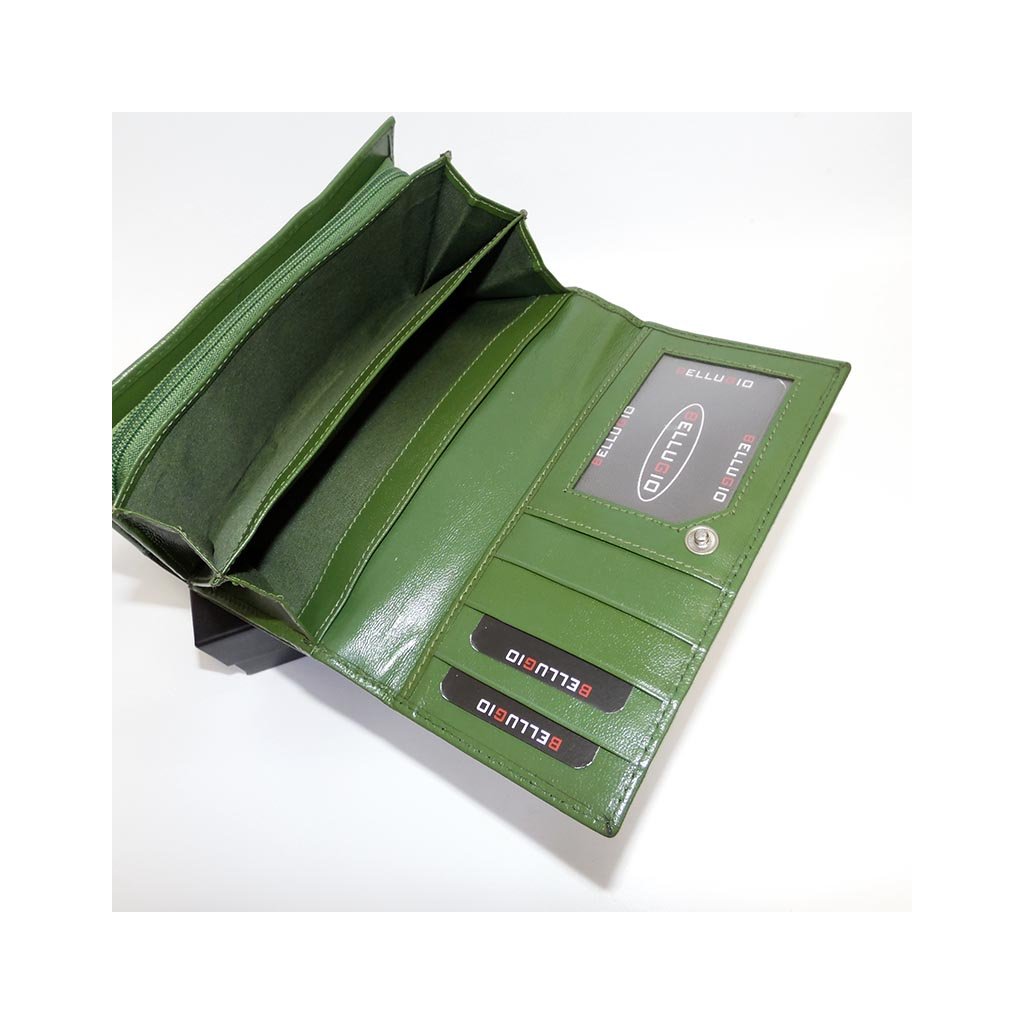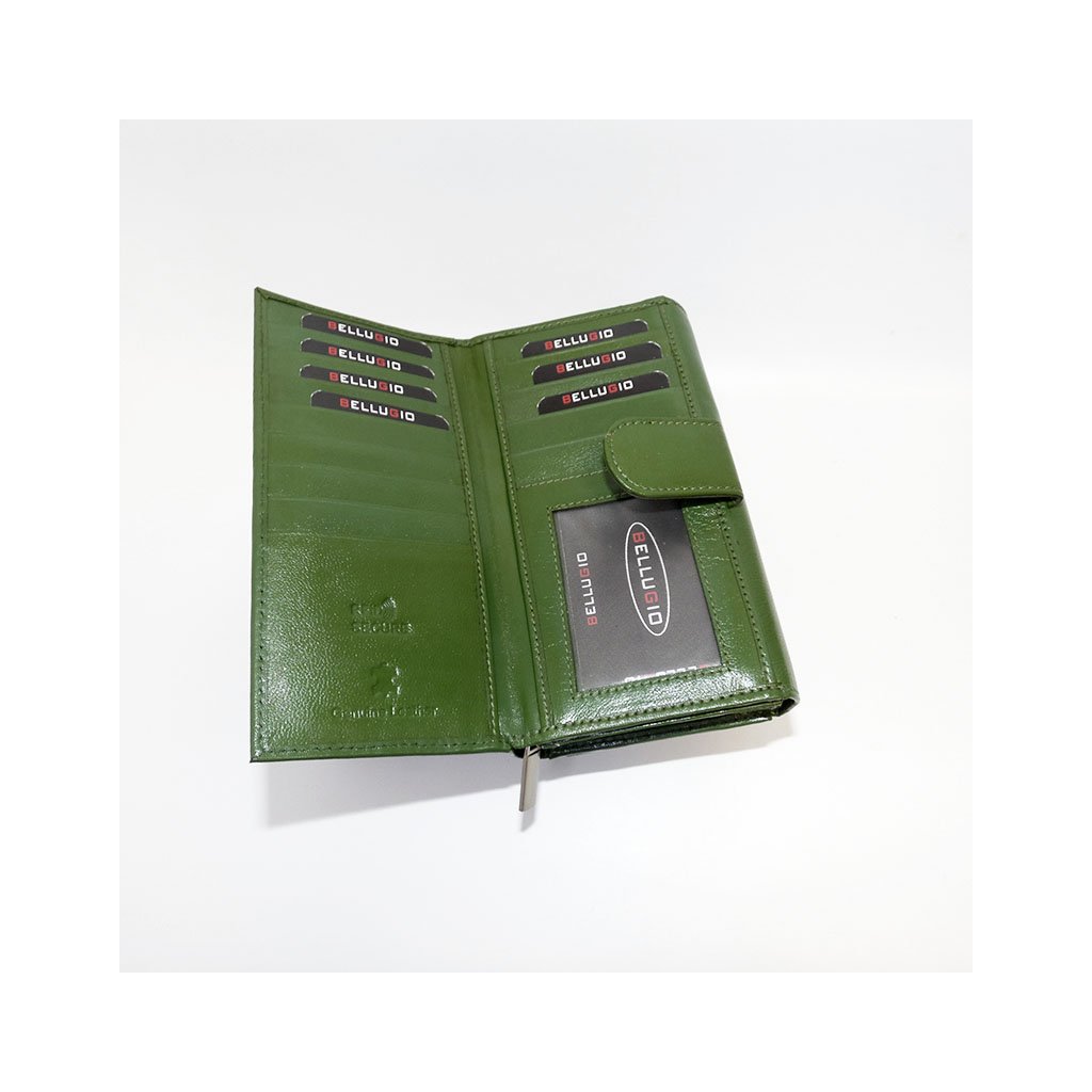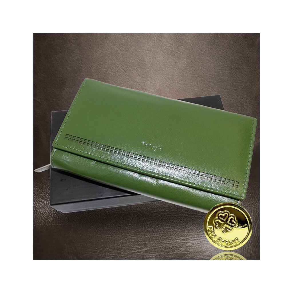 Dámská zelená kožená peněženka BELLUGIO Leather s monogramem a vlastním textem + Akce - zlatá mince Pro štěstí ZDARMA