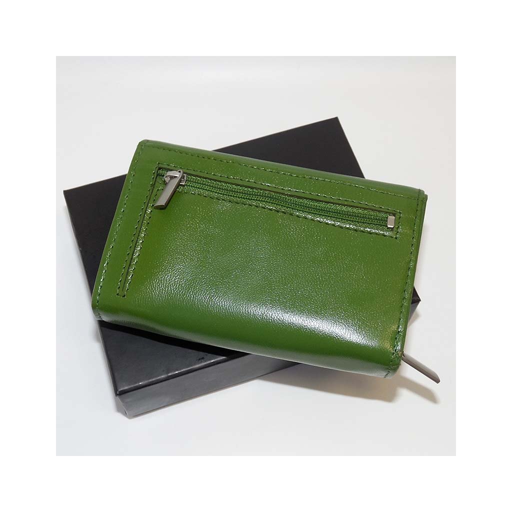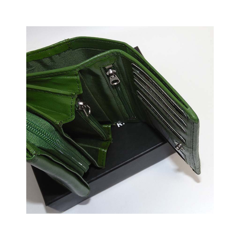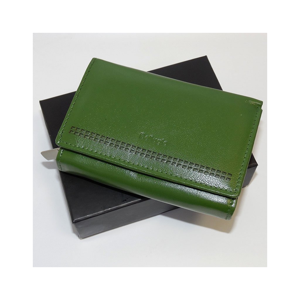 Elegantní dámská peněženka vyrobená z pravé hovězí kůže v decentním zeleném odstínu. Barevně sladěné stejné prošití podtrhuje její elegantní a ucelený vzhled.