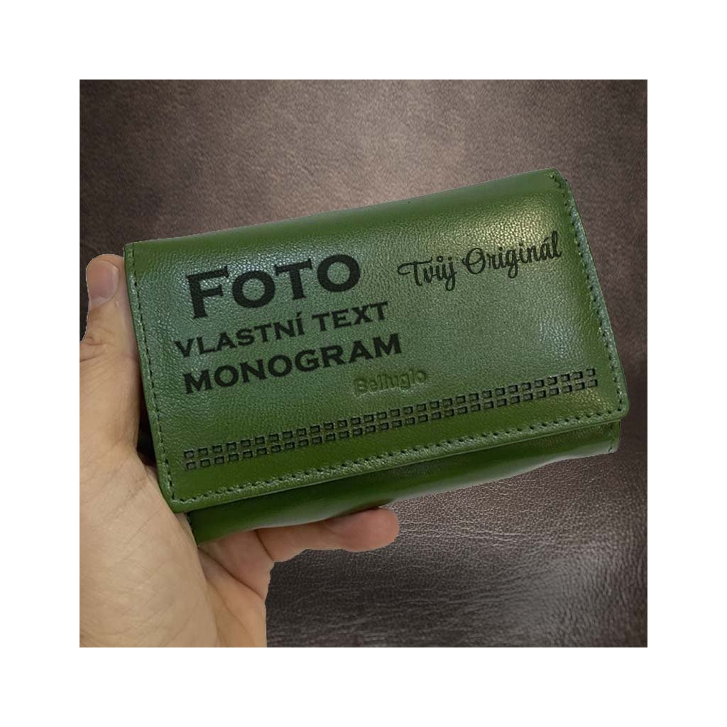 Dámská zelená kožená peněženka BELLUGIO s vaším jedinečným textem