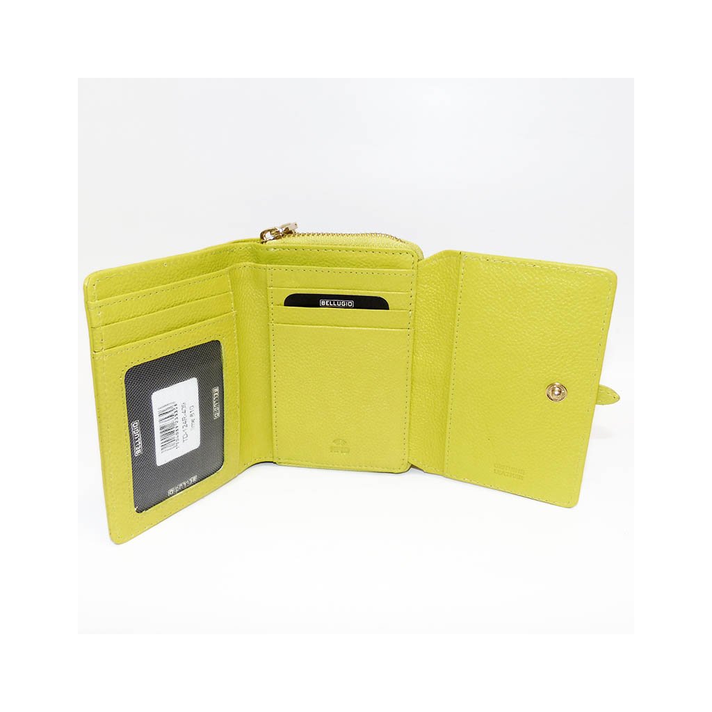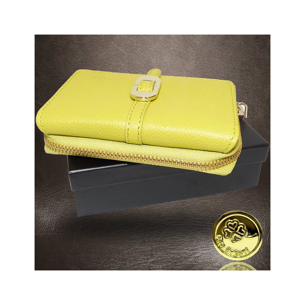 Dámská žlutá kožená peněženka na zip BELLUGIO Leather s monogramem a vlastním textem + Akce - zlatá mince Pro štěstí ZDARMA