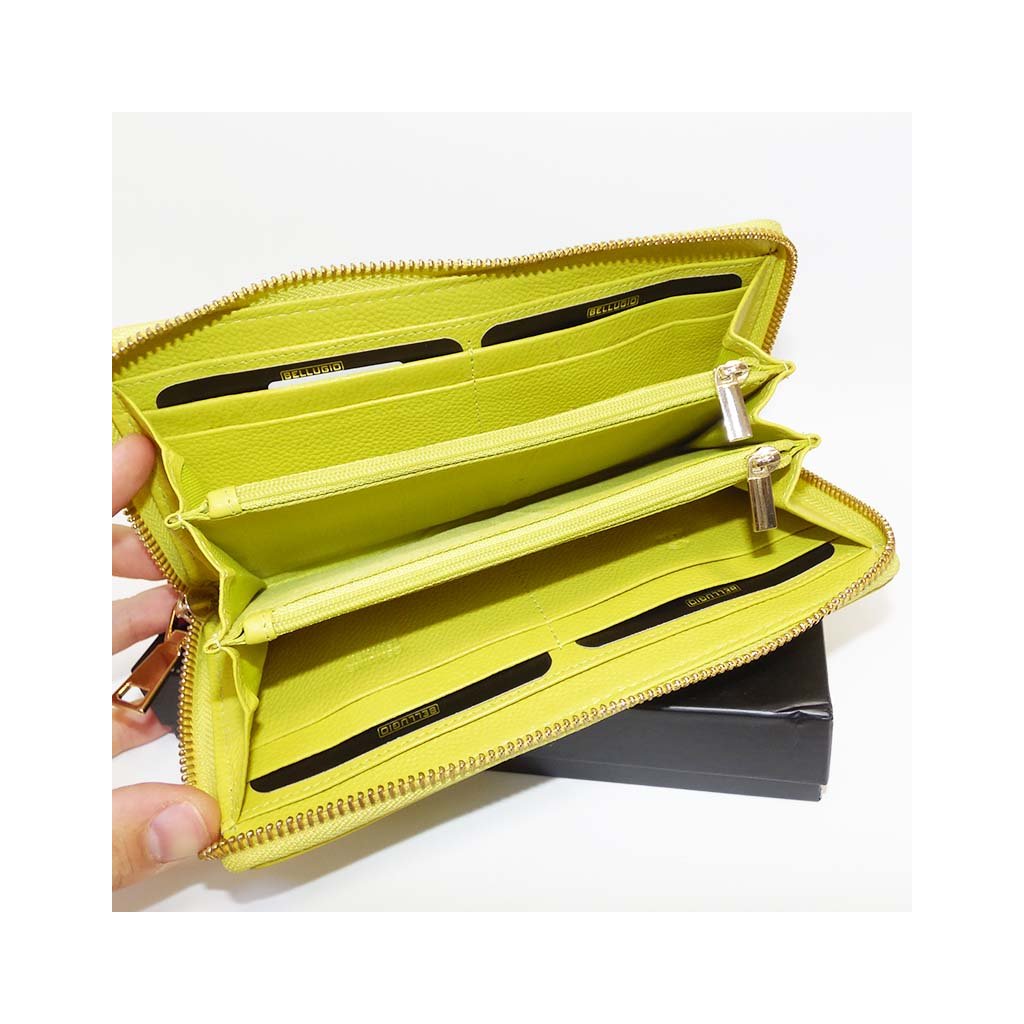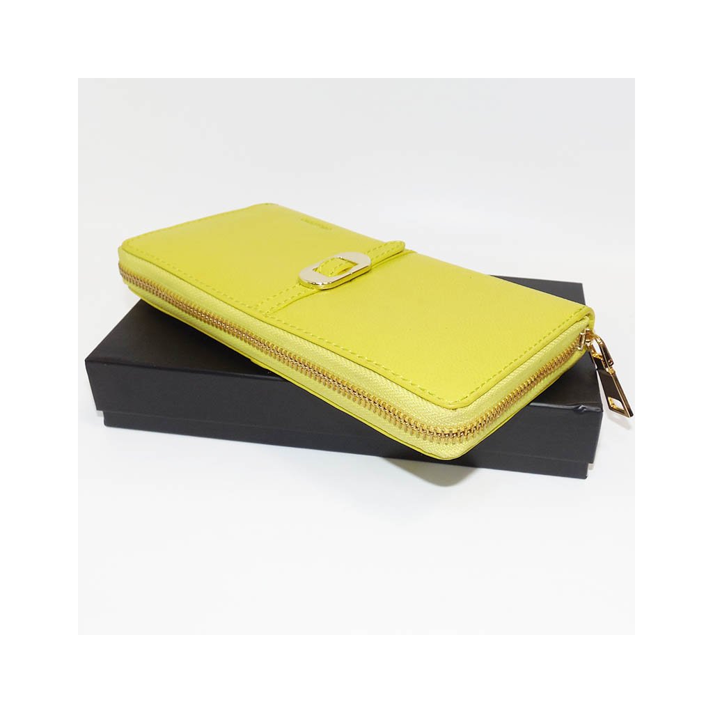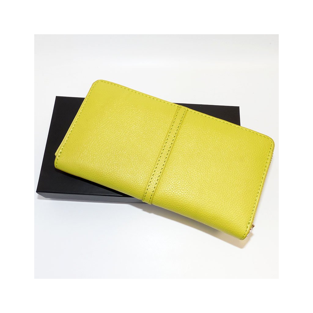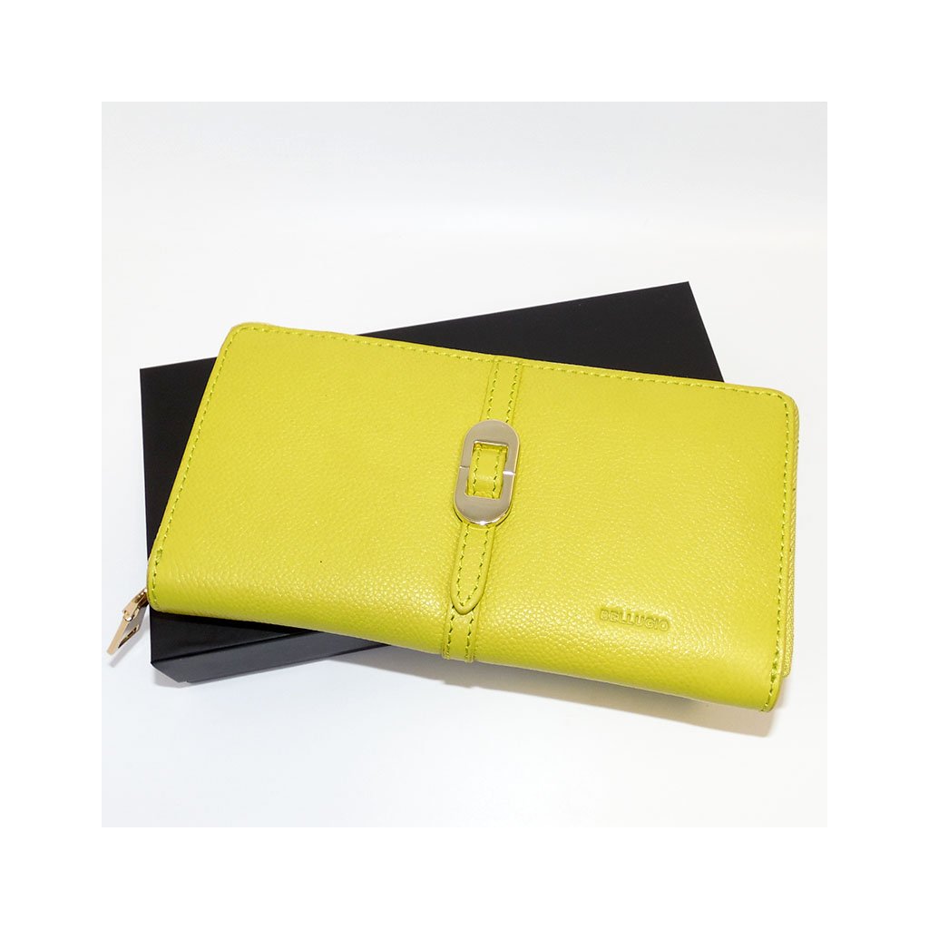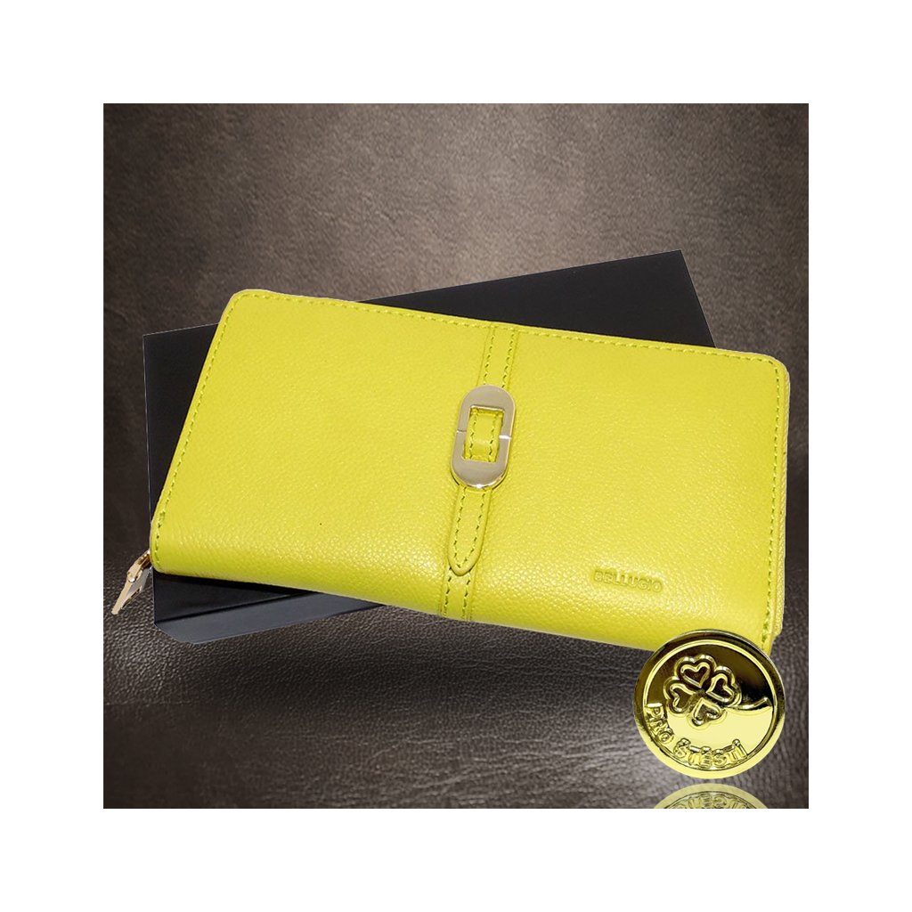 Dámská žlutá kožená peněženka na zip BELLUGIO Leather s monogramem a vlastním textem + Akce - zlatá mince Pro štěstí ZDARMA