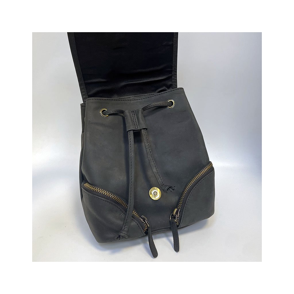 Poctivá ruční práce, batůžek je v zajímavém černém odstínu. Přední kapsy na zip. Je ideálních rozměrů, ideální na cestování, kdy do něj dáte s přehledem vše nezbytné. Součástí jsou nastavitelná poutka.
