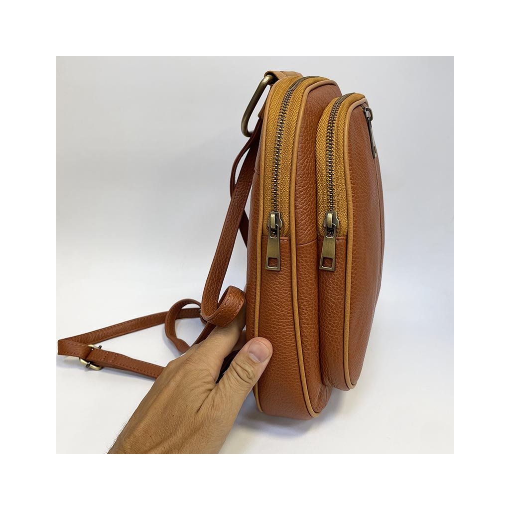 Poctivá ruční práce, batoh je v zajímavé kombinaci hnědého odstínu. Přední prostřední kapsa na zip. Další přední a zadní kapsa. Kožený batoh má hlavní kapsu na zip, je ideálních rozměrů, ideální na cestování, kdy do něj dáte s přehledem vše nezbytné. Součástí je nastavitelný popruho. Nádherná kožený batoh, skvěle drží tvar a vypadá opravdu famózně.