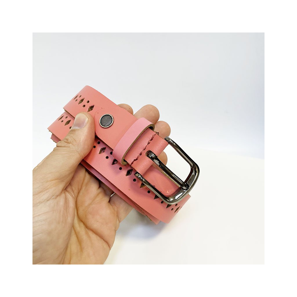 Dámský růžový kožený pásek s monogramem a gravírováním