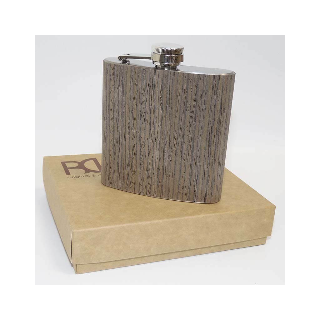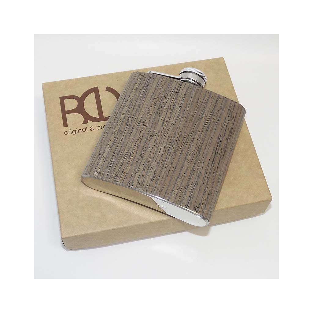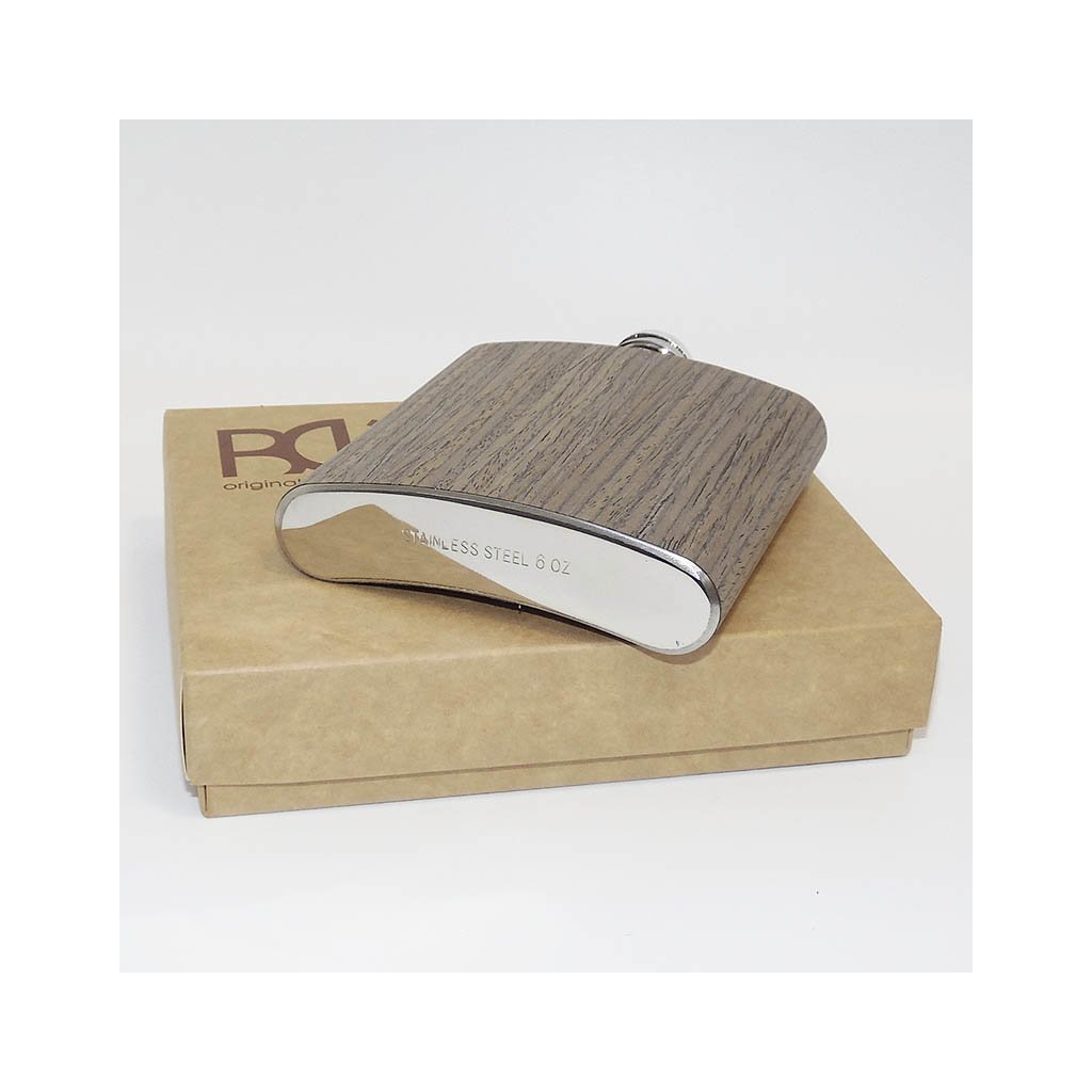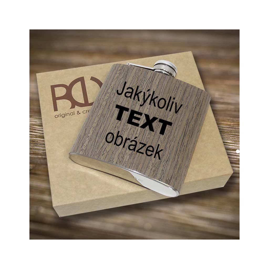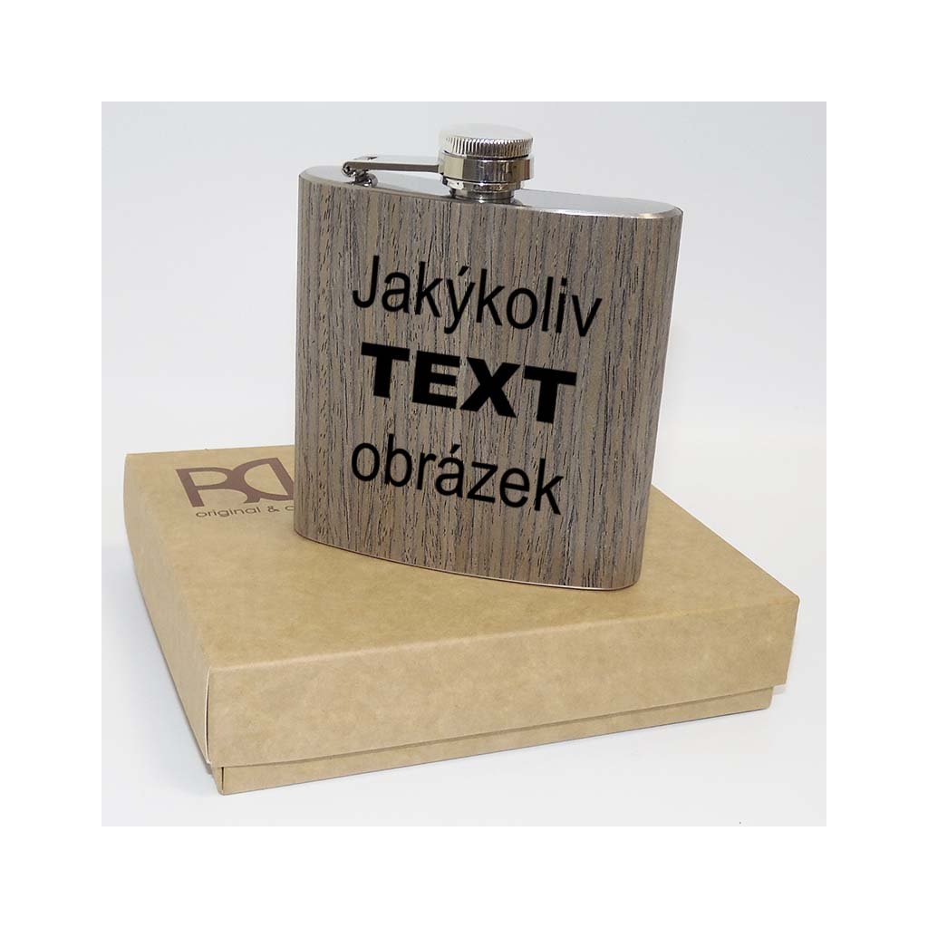 Stylová nerezová placatka s dřevěným designem, která vás překvapí svou praktičností a elegancí. Ideální dárek pro každou příležitost, který můžete zcela přizpůsobit.