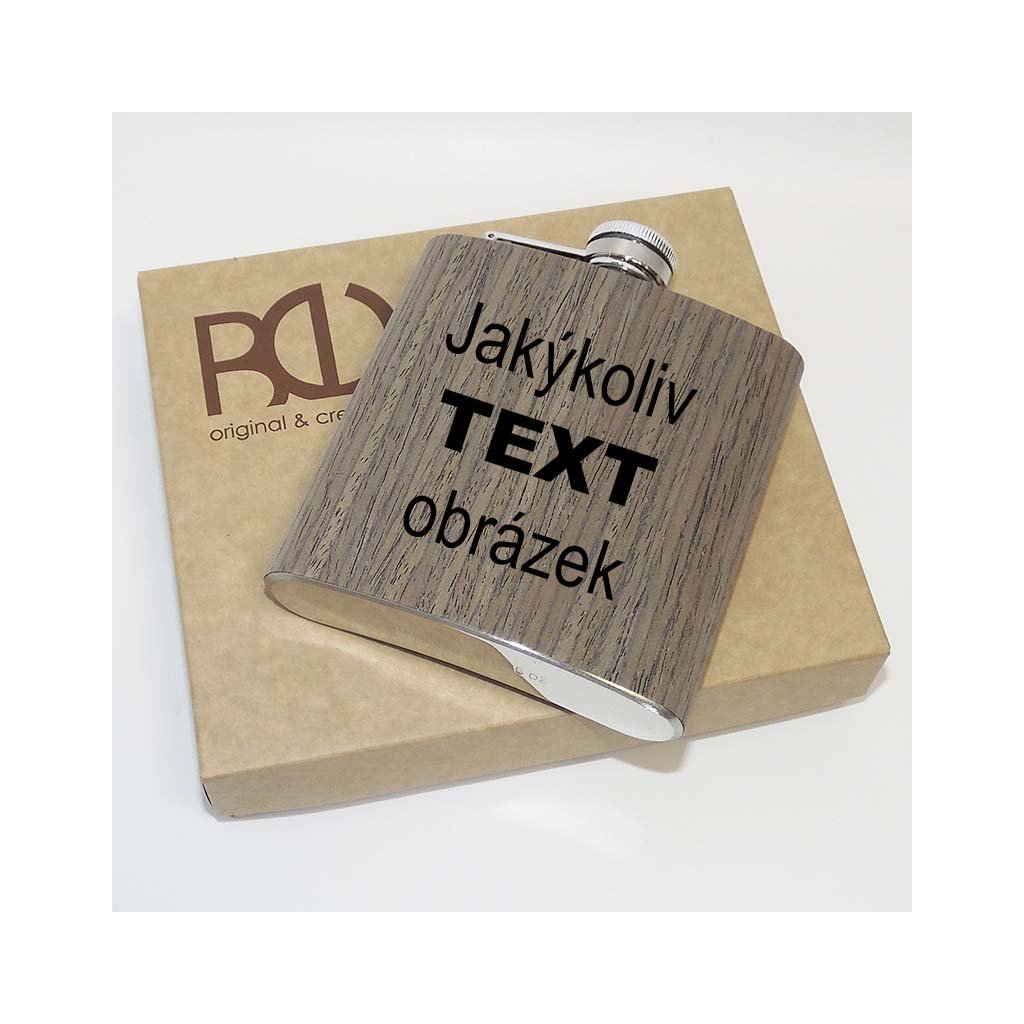 Dřevěná placatka (vnitřek nerez) 180ml BEORIGINAL s vlastním monogramem, textem nebo fotkou + prémiové dárkové balení BE Original