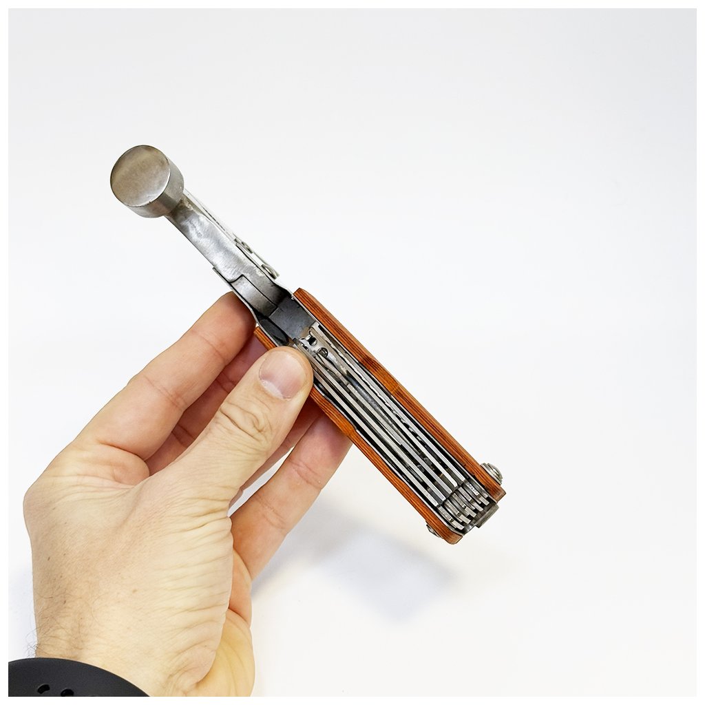 Pro opravdové muže je právě takový praktický setík. Konkrétně tento je ideálních rozměrů cca 17x9cm (při uzavření), přesto je plný praktických vychytávek jako kladívko, sekyrka, nožík, pilník apod..