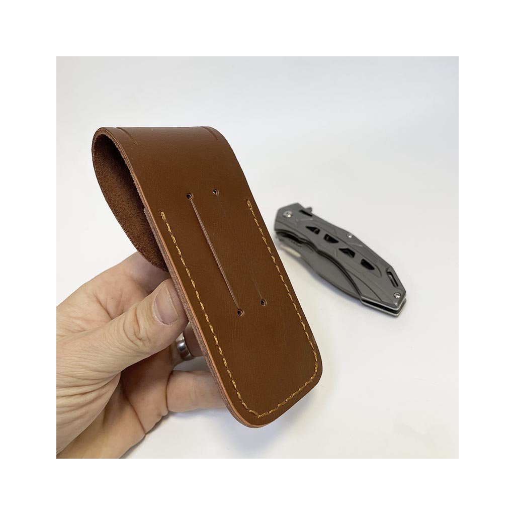 Stylový kovový nůž ve tvaru listu o délce 19 cm (otevřený), včetně koženého pouzdra s možností vlastního gravírování. Unikátní design a praktický doplněk v jednom.