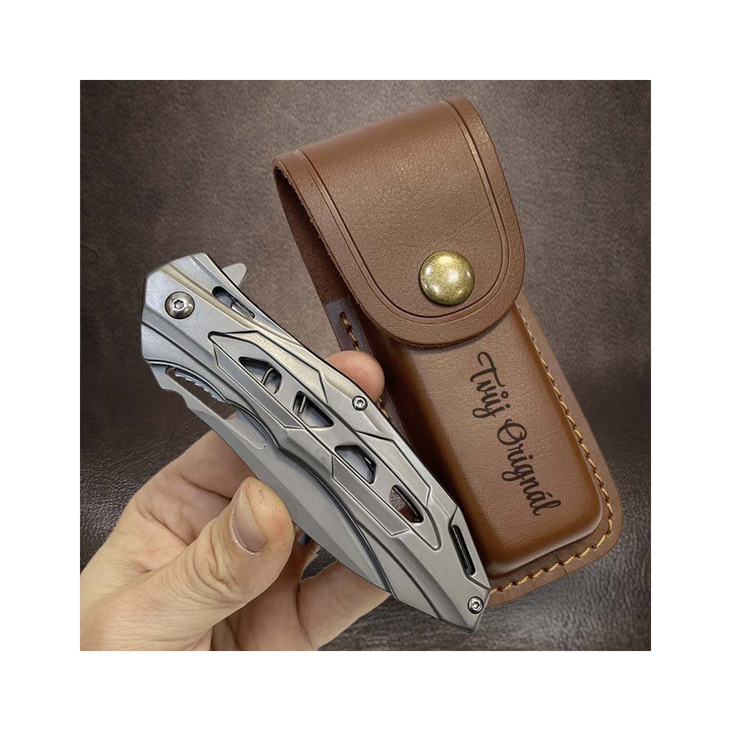 Excelentní kovový vyklápěcí nůž s možností koženého pouzdra s vlastním textem + prémiové dárkové balení BE Original