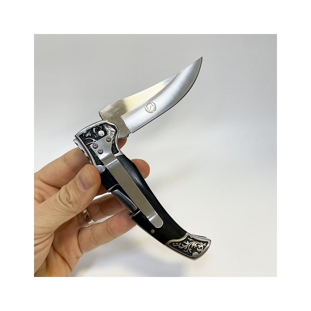 Exkluzivita, prémiovost, praktičnost, kvalita a originalita. To jsou hlavní domény tohoto vyklápěcího nože. Součástí i kožené pouzdro. S tímto nožem zaručeně uspějete u obdarovaného, doplňte věnováním a originál je na světě.