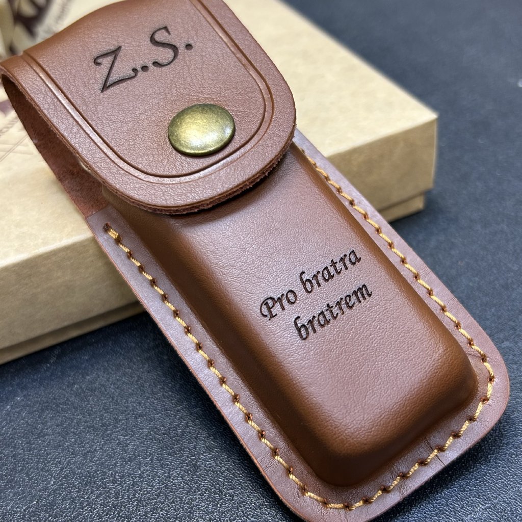 Exkluzivní prémiový vyklápěcí nůž s koženým pouzdrem a vaším osobním gravírováním. Luxusní kombinace kvality, praktičnosti a jedinečnosti – ideální dárek s originálním věnováním.