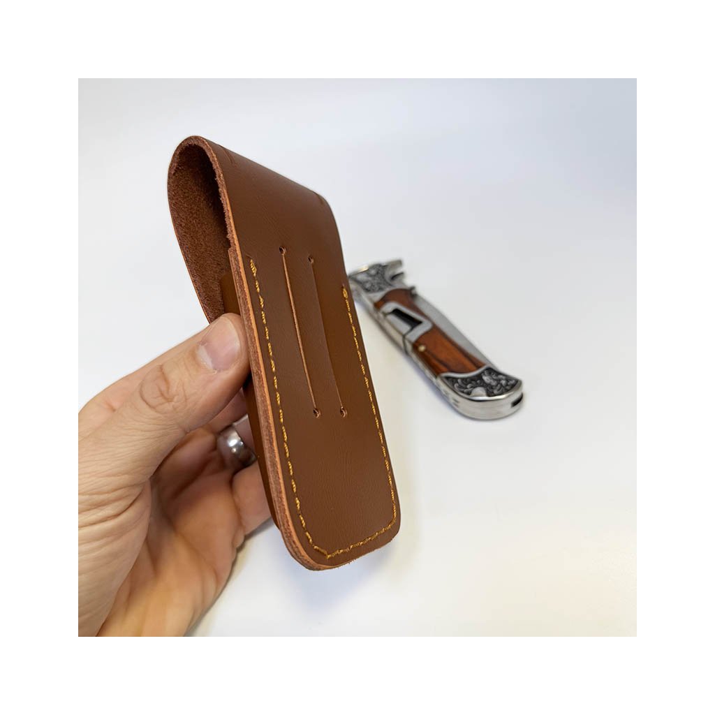 Exkluzivní prémiový vyklápěcí nůž včetně zapínacího koženého pouzdra s vaším jedinečným textem
