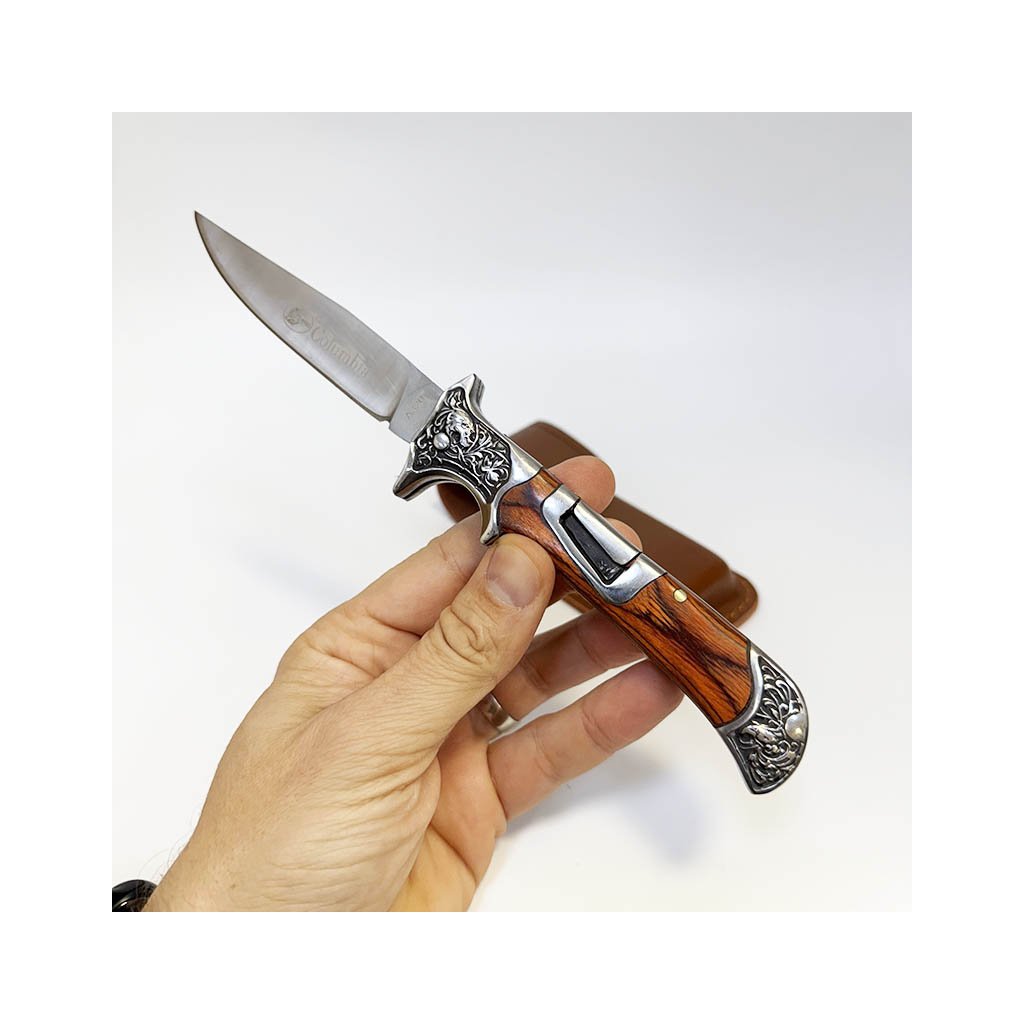 Elegantní vyklápěcí nůž o délce 22 cm (otevřený) s kvalitní dřevěnou rukojetí. Možnost gravírování vlastního textu nebo monogramu. Ideální jako originální dárek.