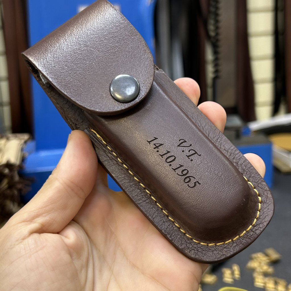 Exkluzivní prémiový vyklápěcí nůž s vlastním textem, včetně koženého pouzdra + prémiové dárkové balení BE Original