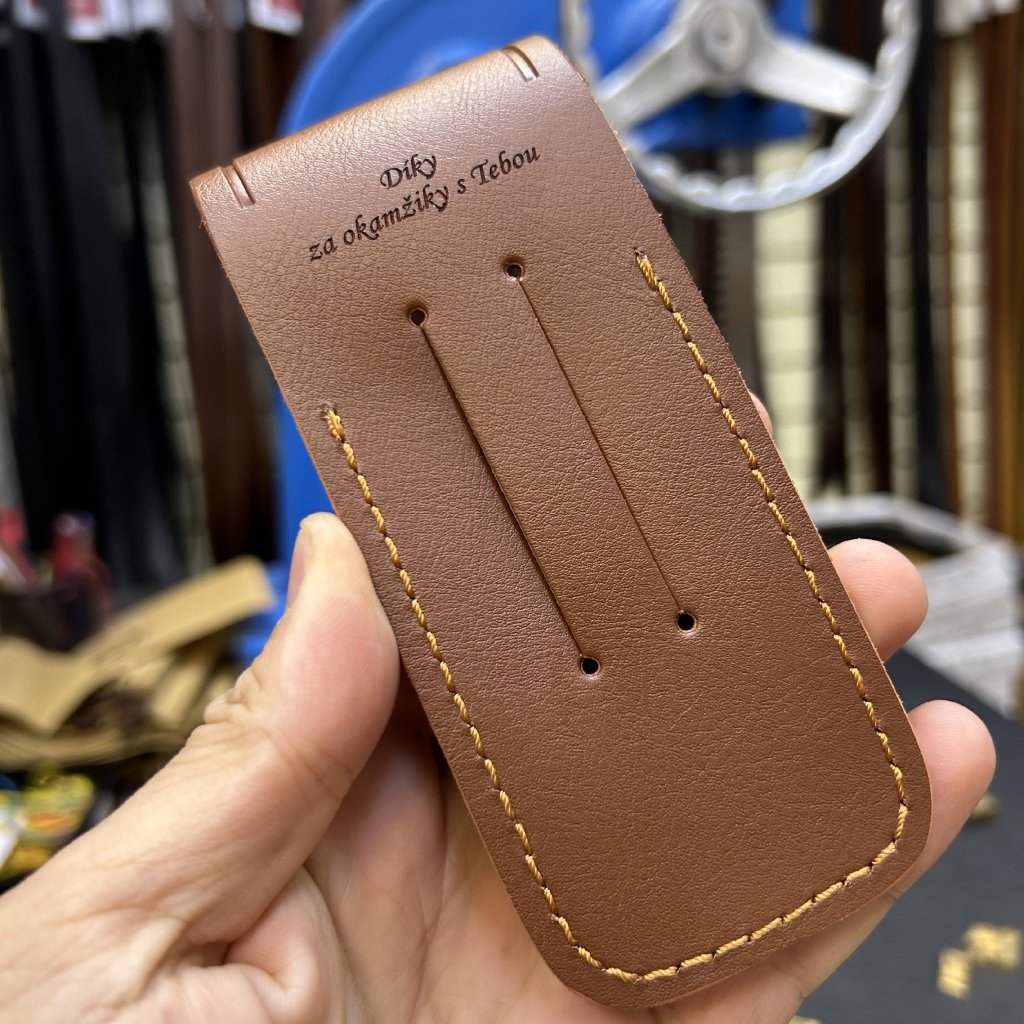 Exkluzivní prémiový vyklápěcí nůž s koženým pouzdrem a vaším osobním gravírováním. Luxusní kombinace kvality, praktičnosti a jedinečnosti – ideální dárek s originálním věnováním.