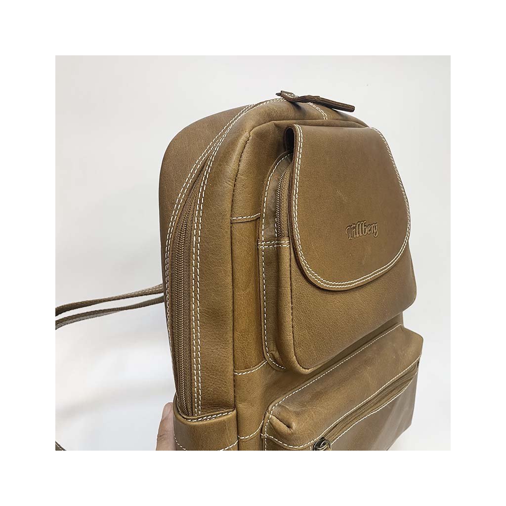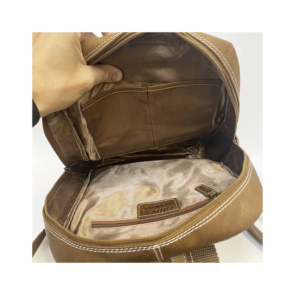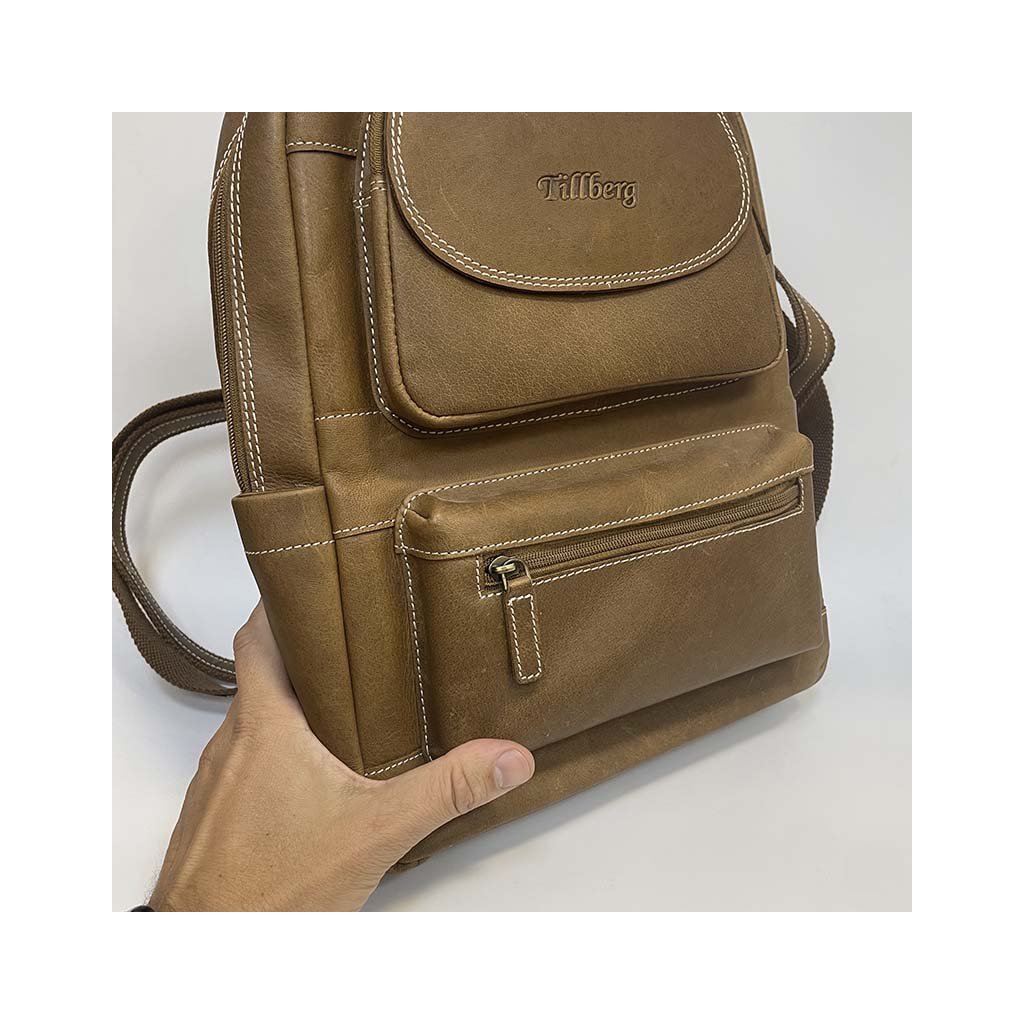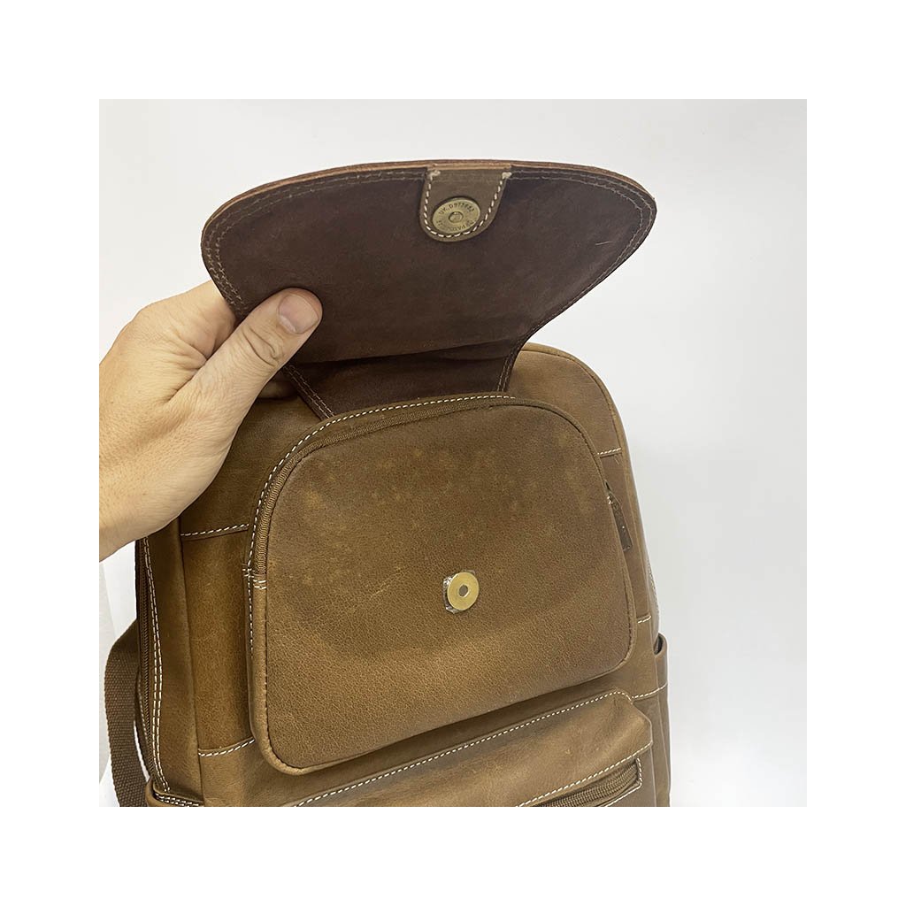 Poctivá ruční práce, kožený batoh je v zajímavém hnědém odstínu. Přední kapsy na zip. Je ideálních rozměrů, ideální na cestování, na každodenní nošení, kdy do něj dáte s přehledem vše nezbytné. Součástí jsou nastavitelná poutka. Velmi oblíbený právě pro svou velikost, vhodný na doklady A4+. Nespornou výhodou je i zadní kapsa na zip