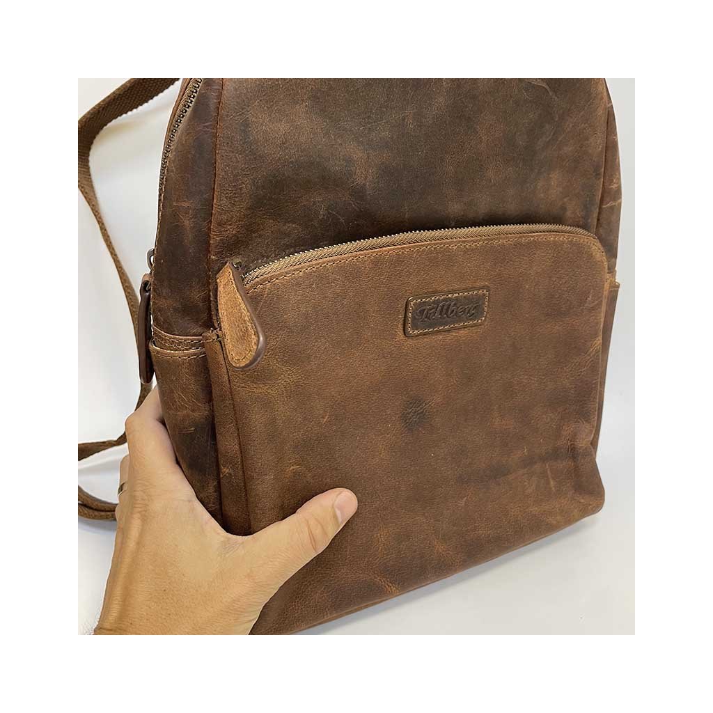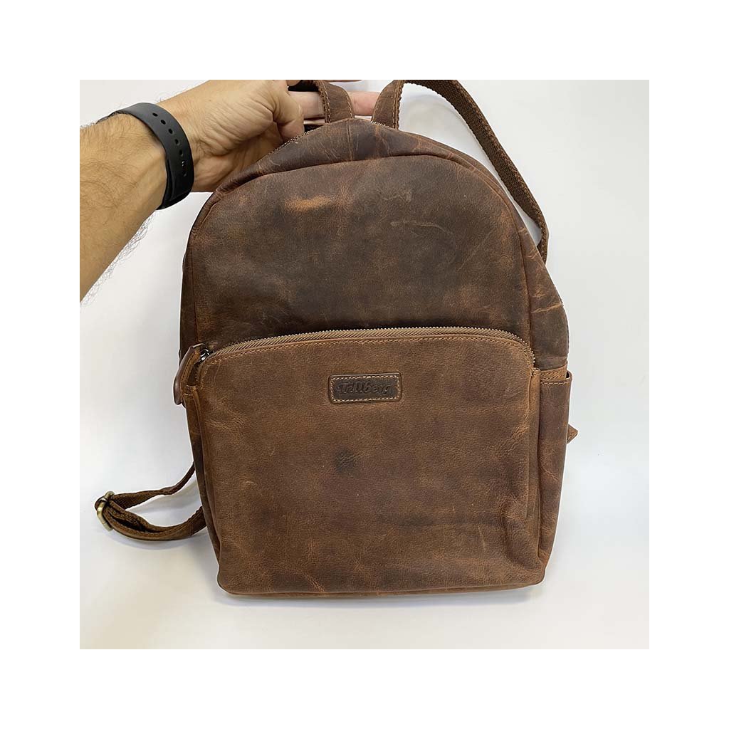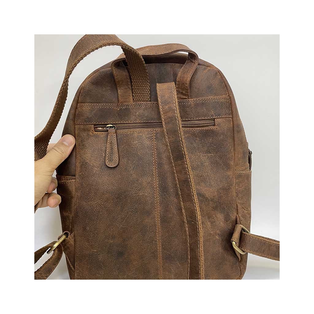 Poctivá ruční práce, kožený batoh je v zajímavém hnědém odstínu. Přední kapsy na zip. Je ideálních rozměrů, ideální na cestování, na každodenní nošení, kdy do něj dáte s přehledem vše nezbytné. Součástí jsou nastavitelná poutka. Velmi oblíbený právě pro svou velikost, vhodný na doklady A4+. Nespornou výhodou je i zadní kapsa na zip