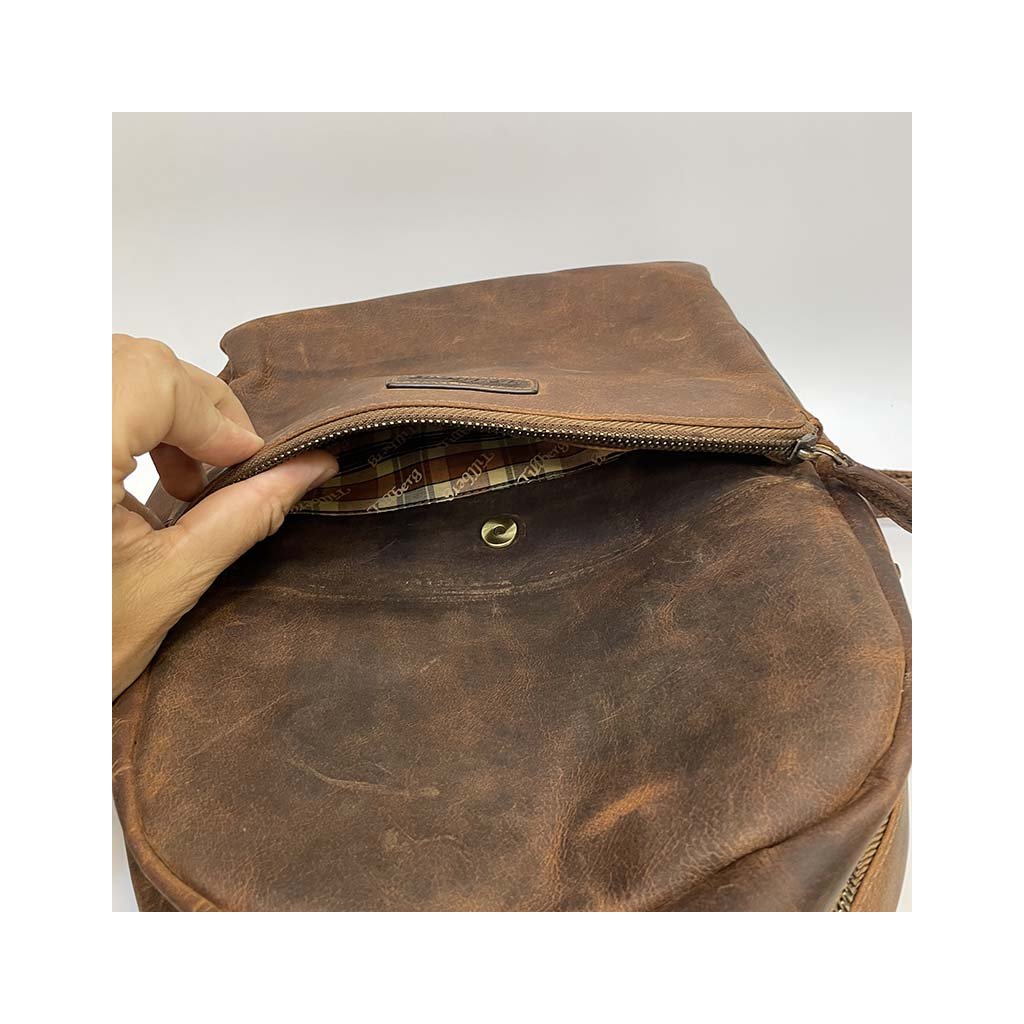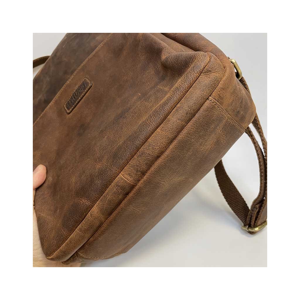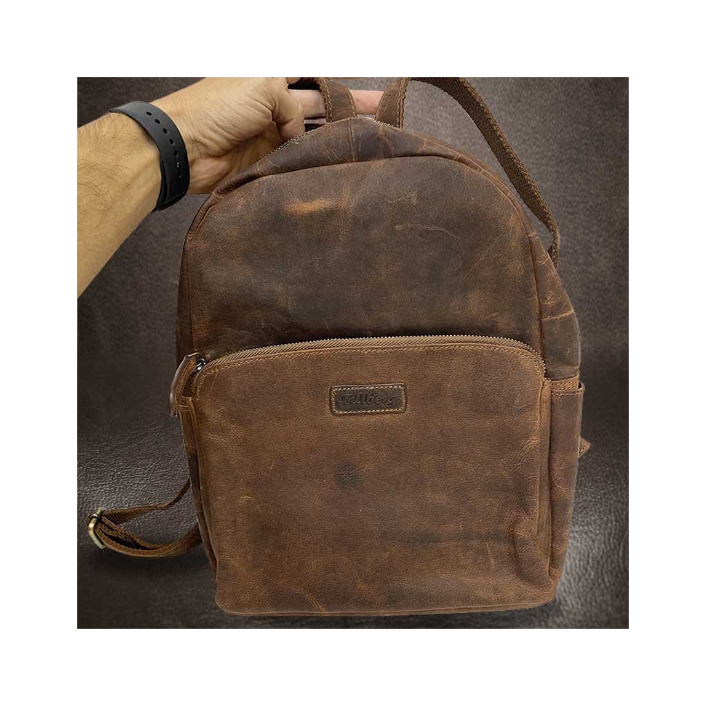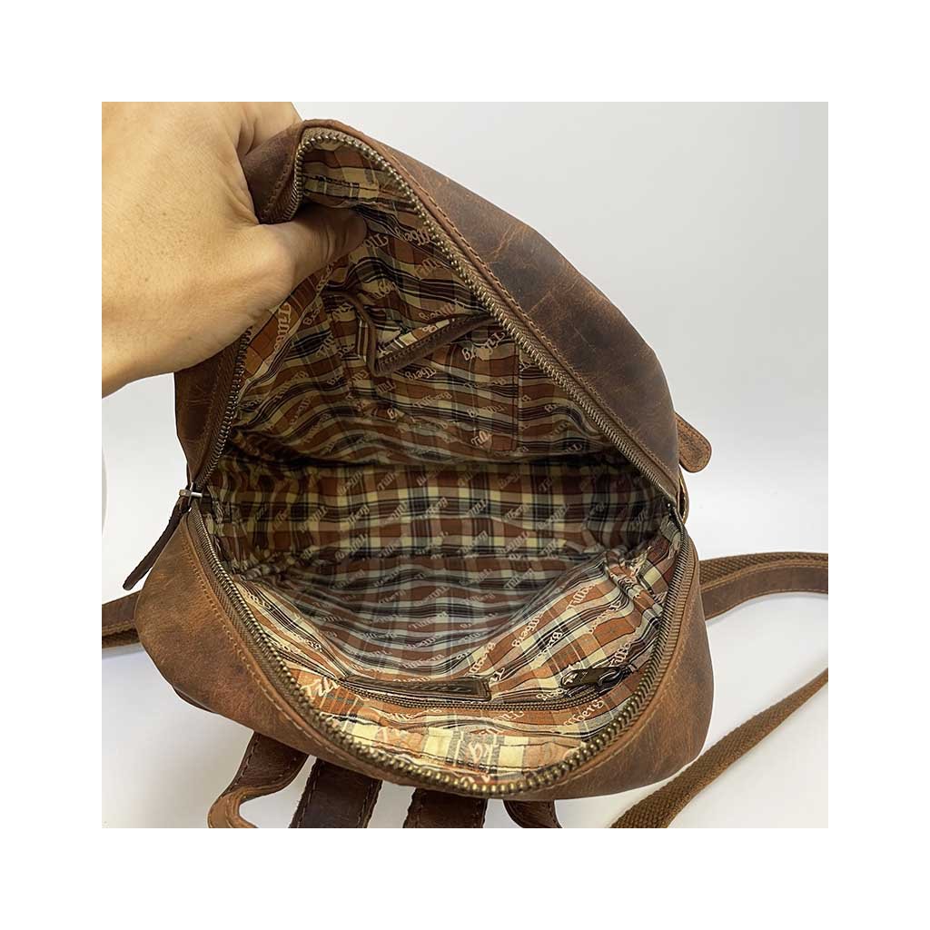 Poctivá ruční práce, kožený batoh je v zajímavém hnědém odstínu. Přední kapsy na zip. Je ideálních rozměrů, ideální na cestování, na každodenní nošení, kdy do něj dáte s přehledem vše nezbytné. Součástí jsou nastavitelná poutka. Velmi oblíbený právě pro svou velikost, vhodný na doklady A4+. Nespornou výhodou je i zadní kapsa na zip
