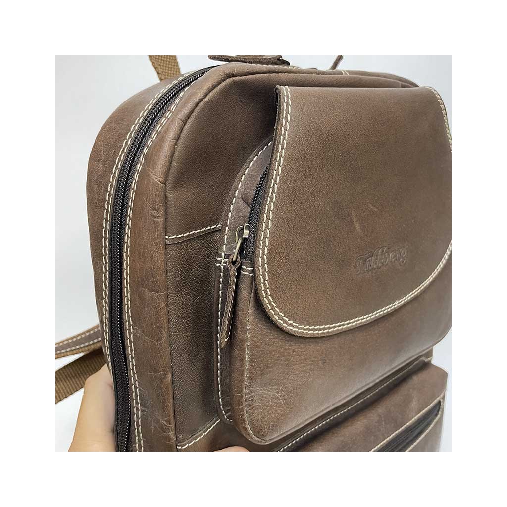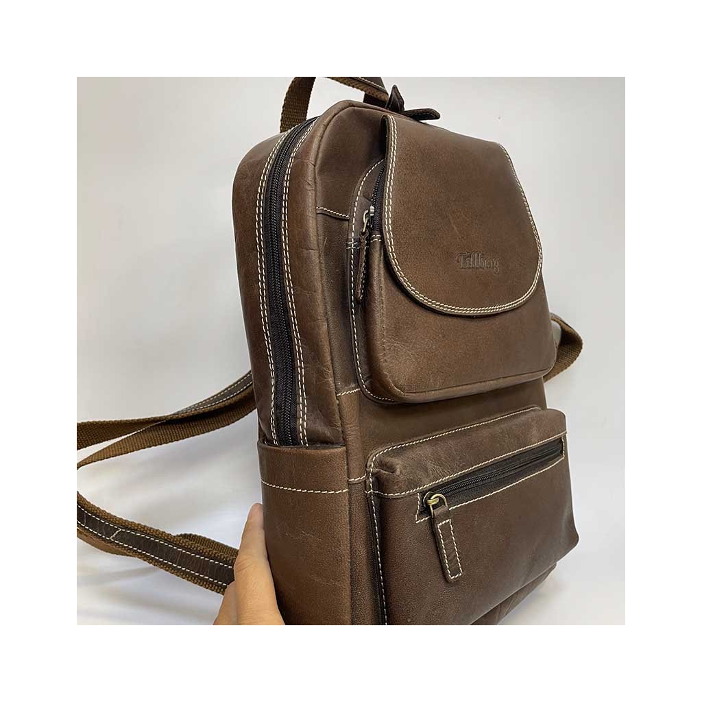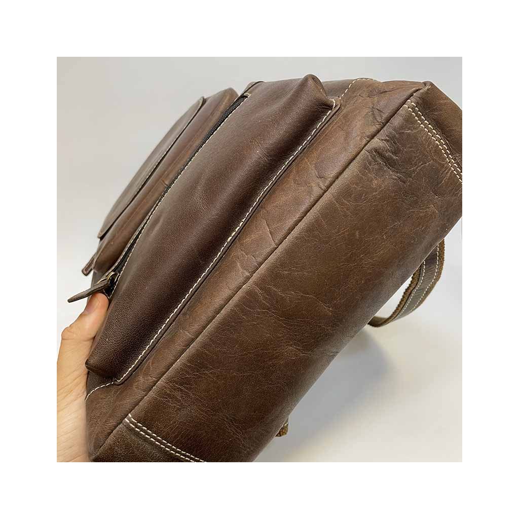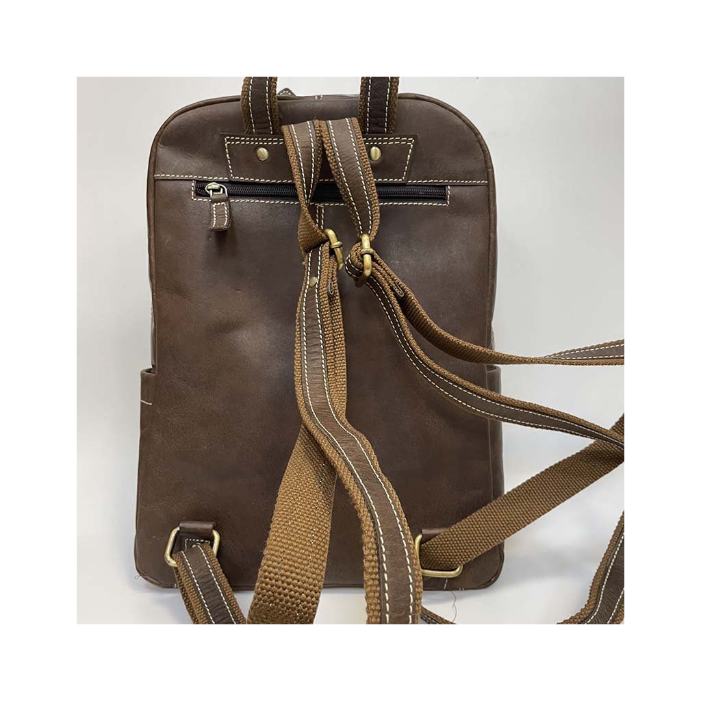 Poctivá ruční práce, kožený batoh je v krásném hnědém odstínu. Přední kapsy na zip. Je ideálních rozměrů, ideální na cestování, na každodenní nošení, kdy do něj dáte s přehledem vše nezbytné. Součástí jsou nastavitelná poutka. Velmi oblíbený právě pro svou velikost, vhodný na doklady A4+. Nespornou výhodou je i zadní kapsa na zip