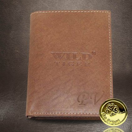 Elegantní pánská světle hnědá kožená peněženka Tiger Leather na výšku, bez zapínání, s možností personalizace monogramem. Kvalita a styl v jednom.