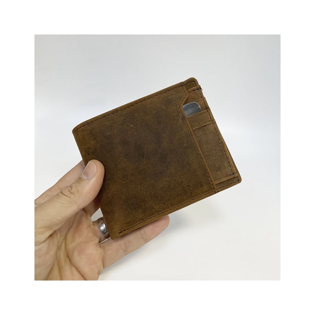 Hnědá SLIM 2v1 kožená peněženka BEORIGINAL Leather s monogramem (ražba) + Akce - zlatá mince Pro štěstí ZDARMA