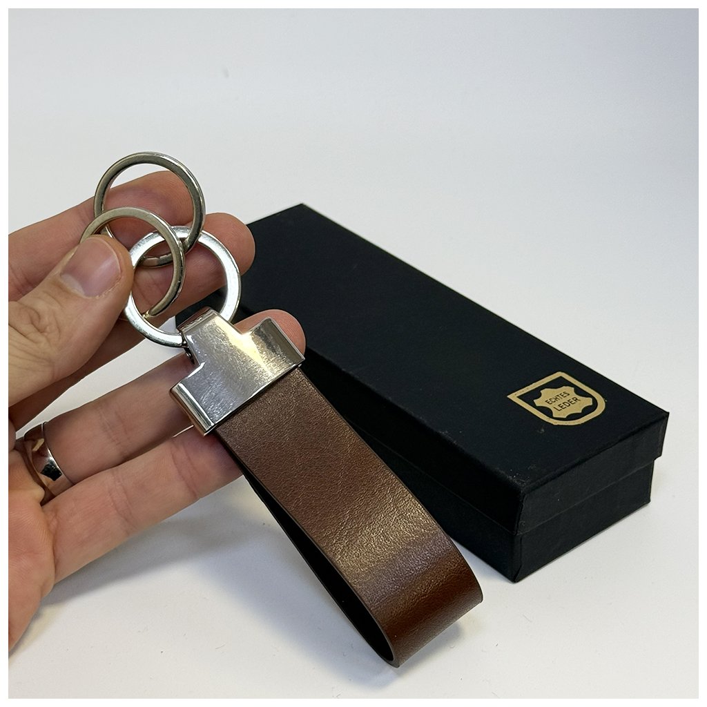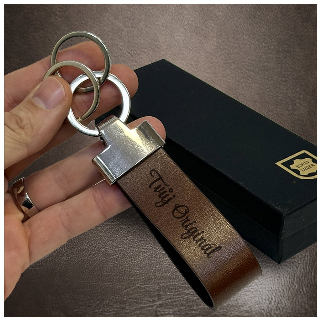 Hnědá velká kožená klíčenka BEORIGINAL LEATHER s tvým vlastním textem Možnost gravírování z obou stran