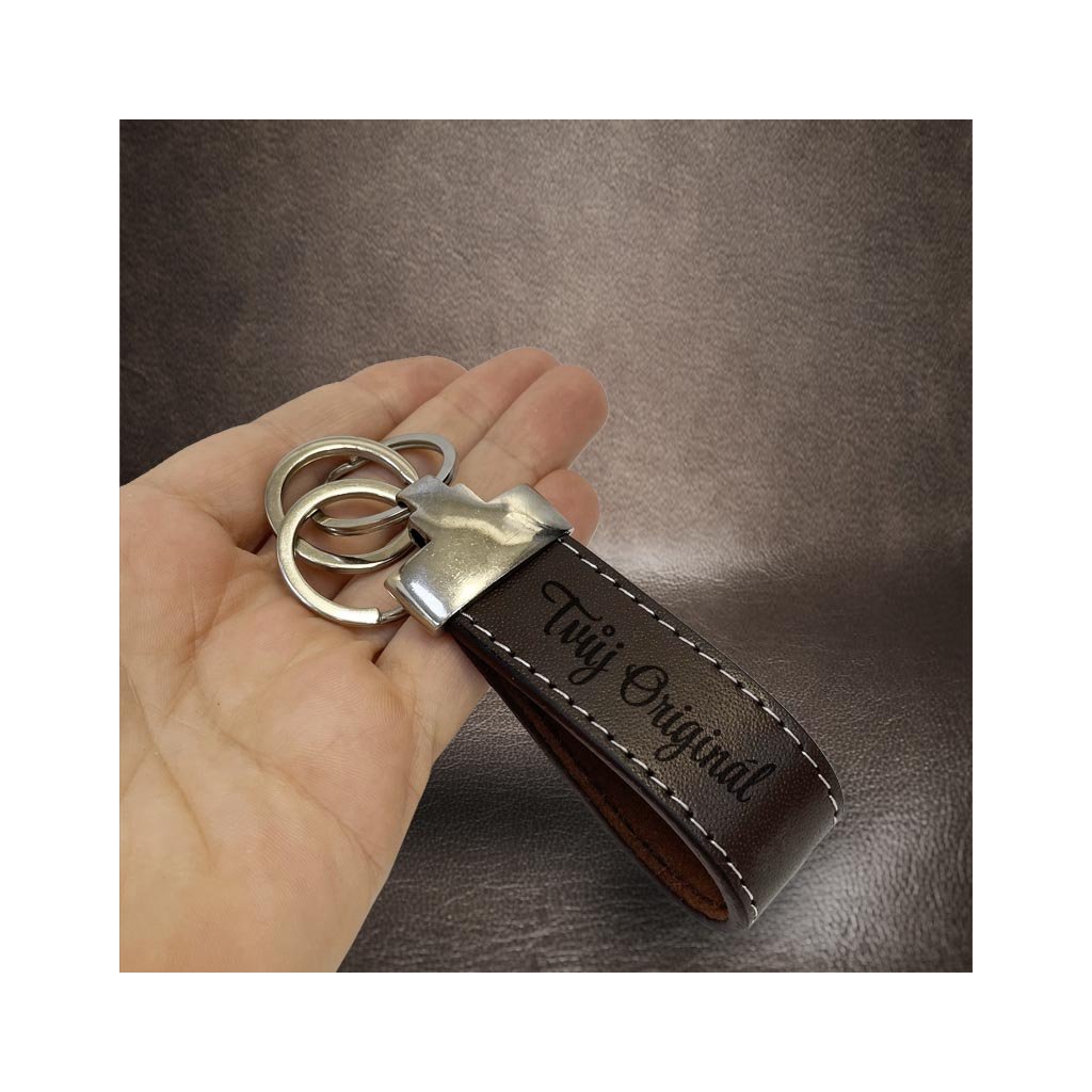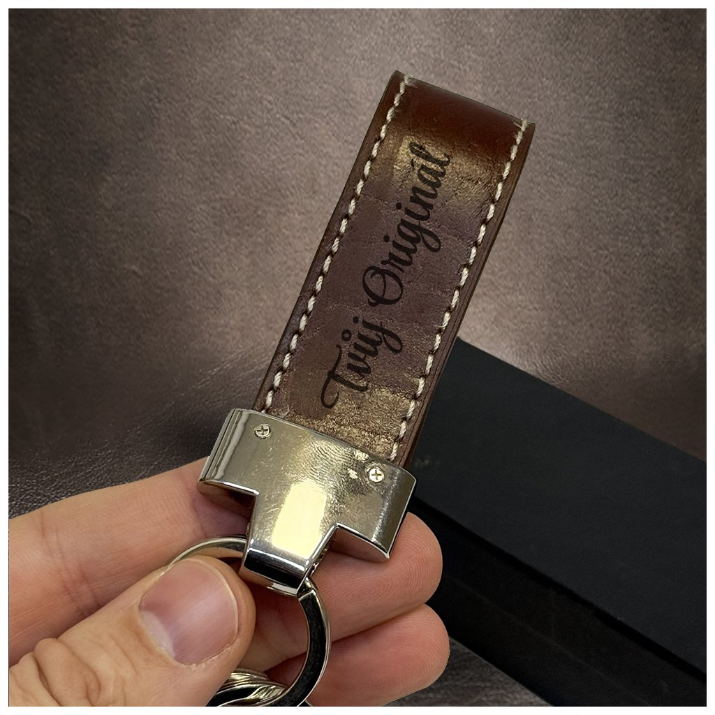 Hnědá velká kožená klíčenka BEORIGINAL LEATHER s tvým vlastním textem Možnost gravírování z obou stran