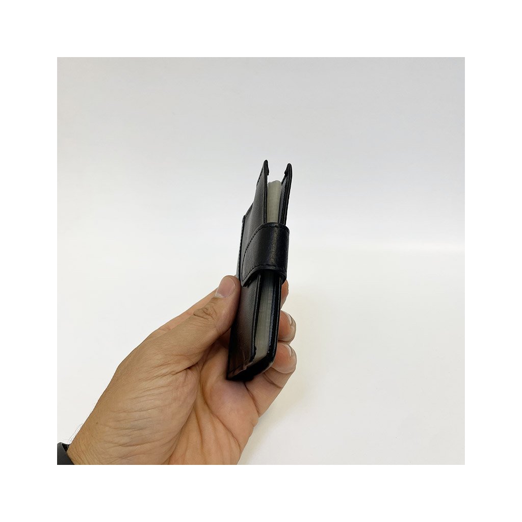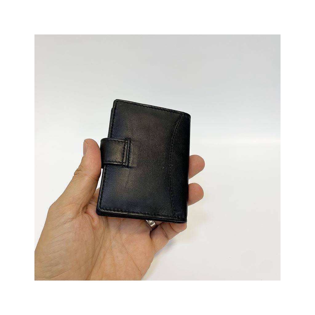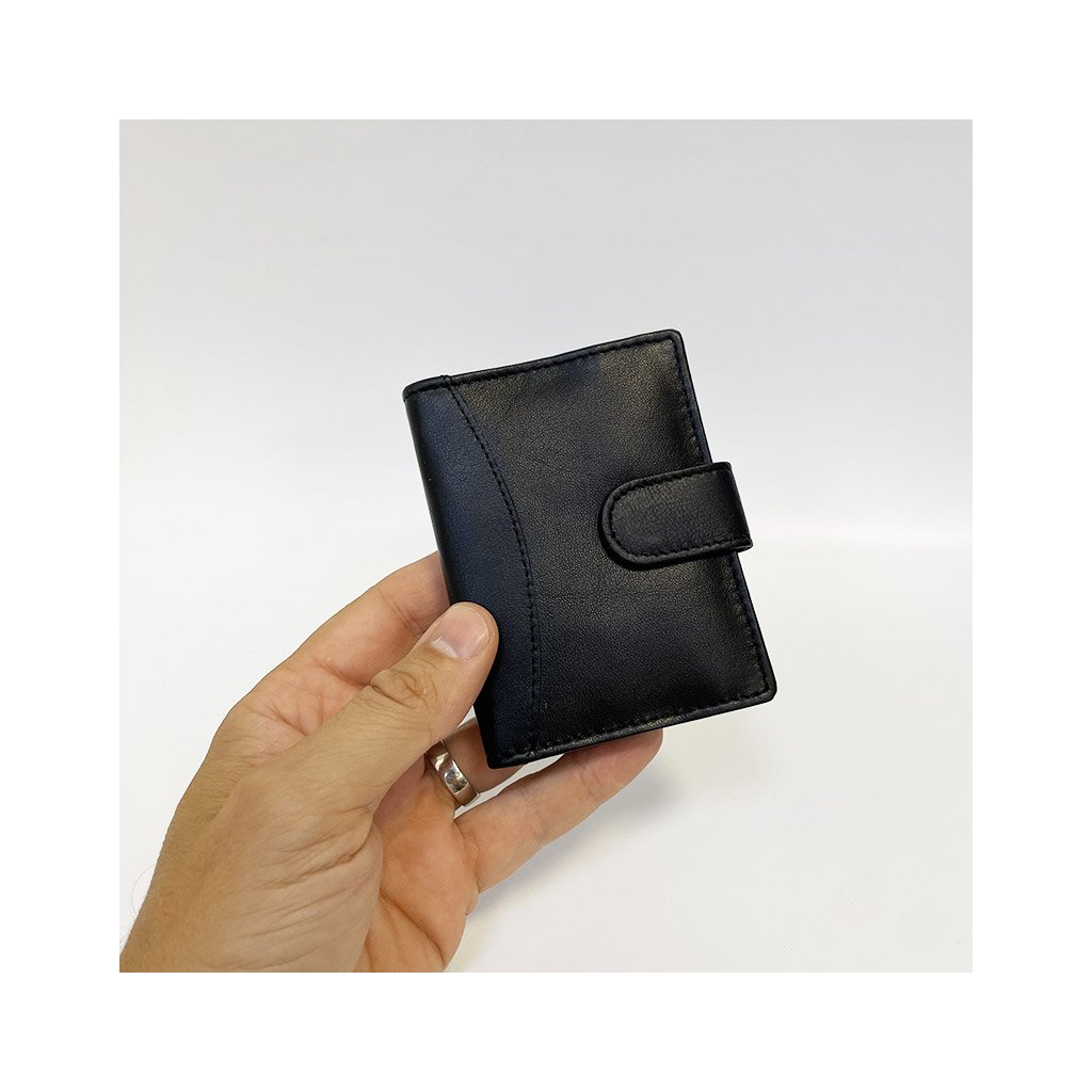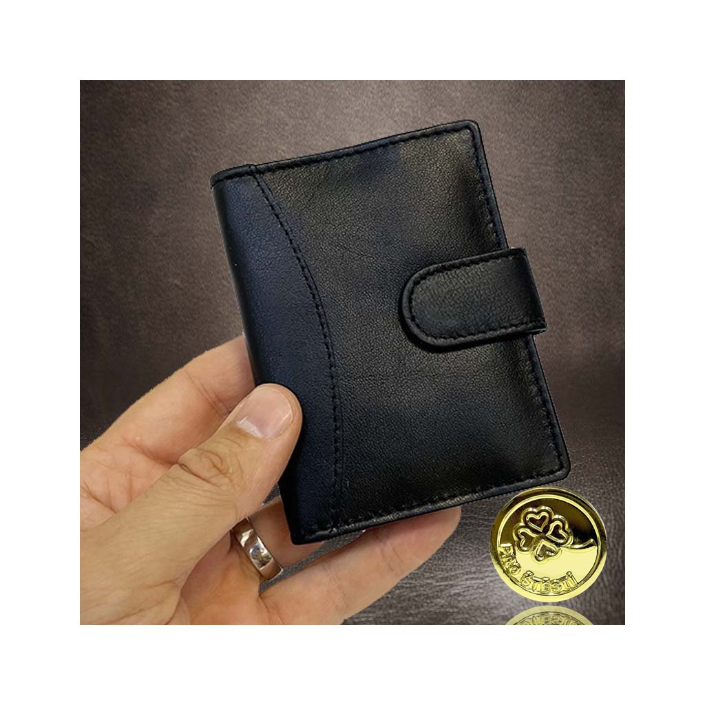 Kompaktní černá kožená dokladovka peněženka BEORIGINAL Leather s tvým vlastním monogramem (ražba) + Akce - zlatá mince Pro štěstí ZDARMA