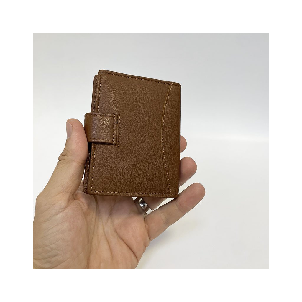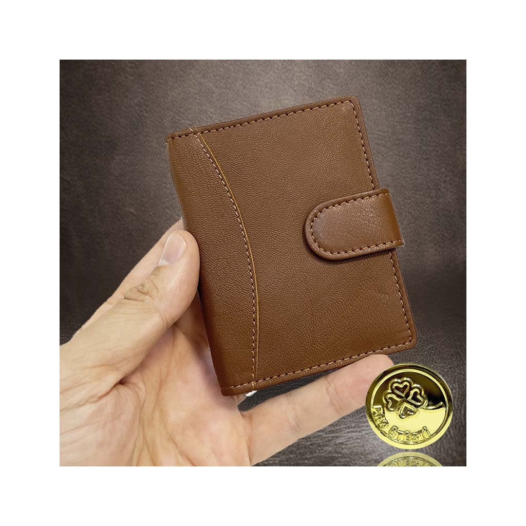 Kompaktní hnědá kožená dokladovka peněženka BEORIGINAL Leather s tvým vlastním monogramem (ražba) + Akce - zlatá mince Pro štěstí ZDARMA