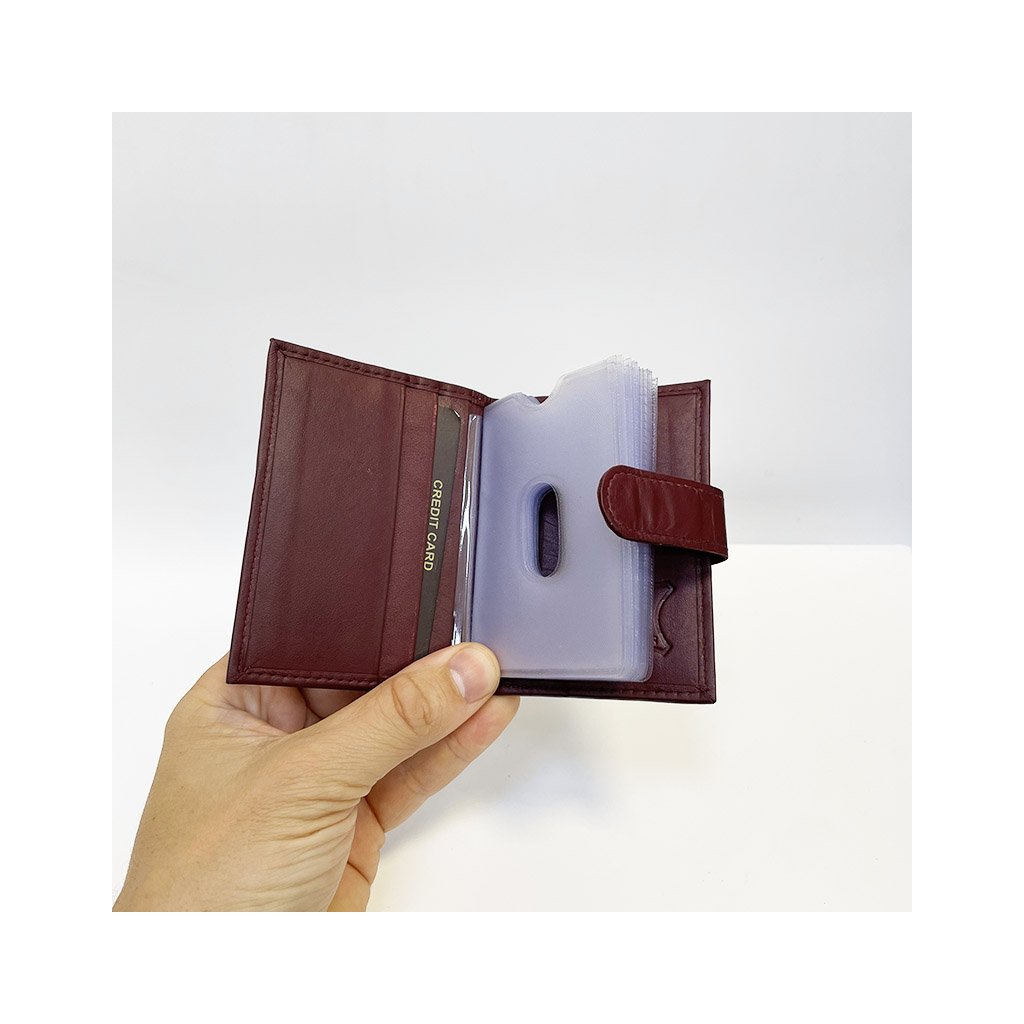 Kompaktní kožená dokladovka s ražbou monogramu zdarma. Pravá kůže, 20 plastových přihrádek, ruční šití a elegantní černý design.