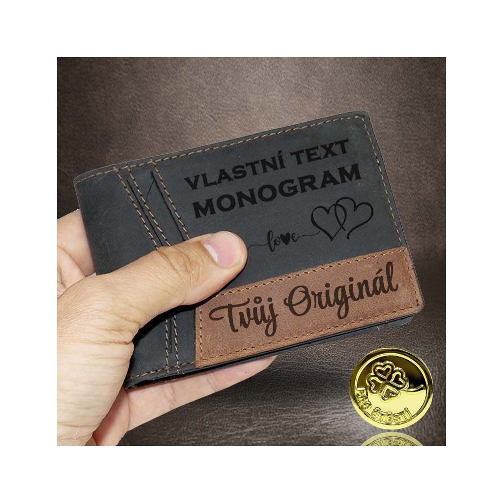 Kožená dolarovka COMBO Leather s monogramem a vlastním textem + Akce - zlatá mince Pro štěstí ZDARMA